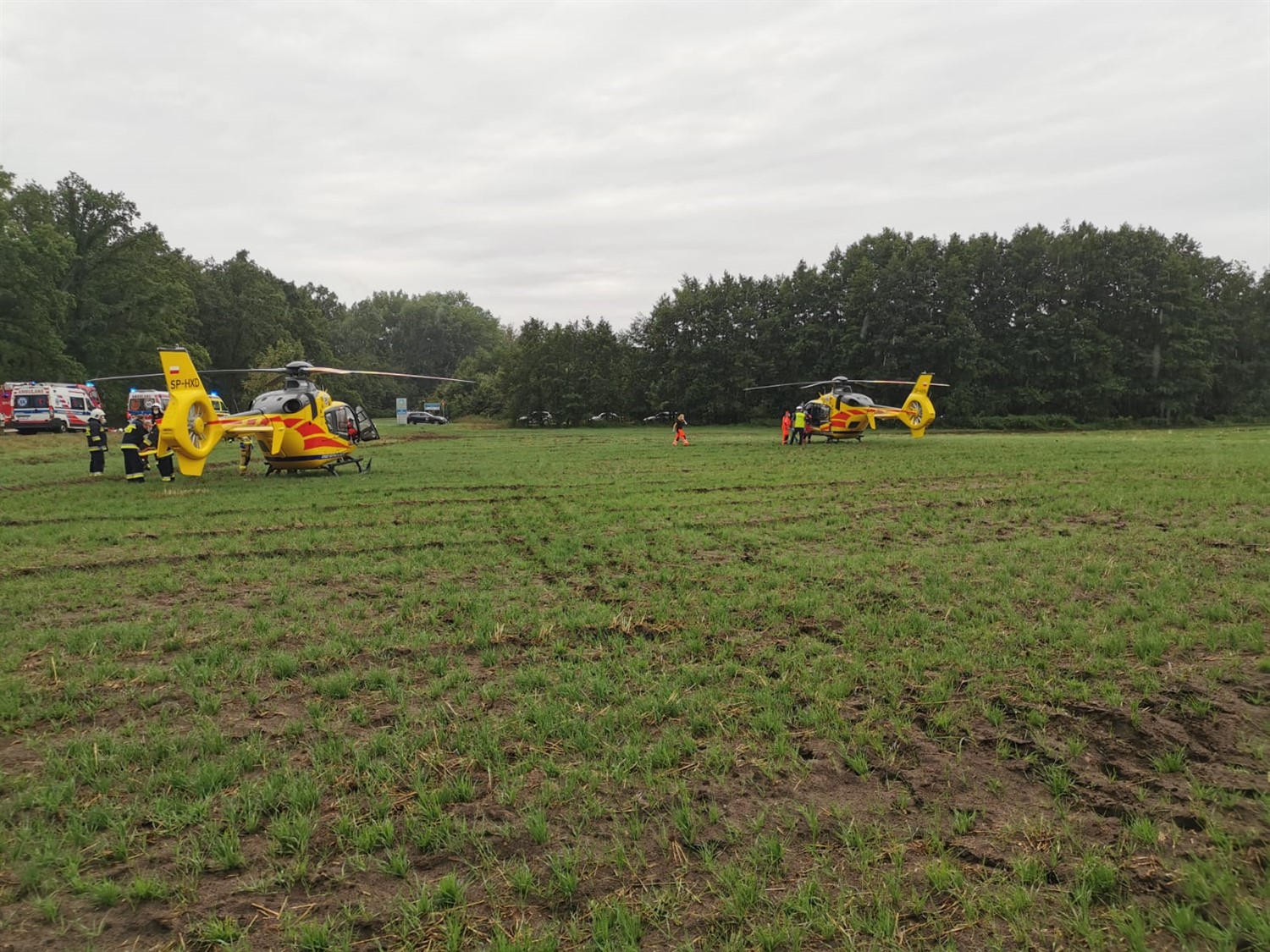 Kierowca samochodu osobowego był uwięziony w pojeździe, natomiast pozostałe osoby podróżujące pojazdami znajdowały się na zewnątrz. Strażacy zabezpieczyli teren działań i rozłączyli akumulatory w uszkodzonych pojazdach. Przy pomocy narzędzi hydraulicznych wykonano dostęp do kierowcy samochodu osobowego, któremu udzielono kwalifikowanej pomocy przedmedycznej. Na miejsce zdarzenia zadysponowane zostały trzy śmigłowce LPR, dla których wyznaczono i przygotowano lądowisko. Pod nadzorem Zespołów Ratownictwa Medycznego poszkodowanych przetransportowano do karetek oraz śmigłowców LPR. Po zakończonych czynnościach dochodzeniowych prowadzonych przez funkcjonariuszy Komendy Miejskiej Policji w Lesznie, usunięto resztki powypadkowe oraz płyny eksploatacyjne z jezdni.