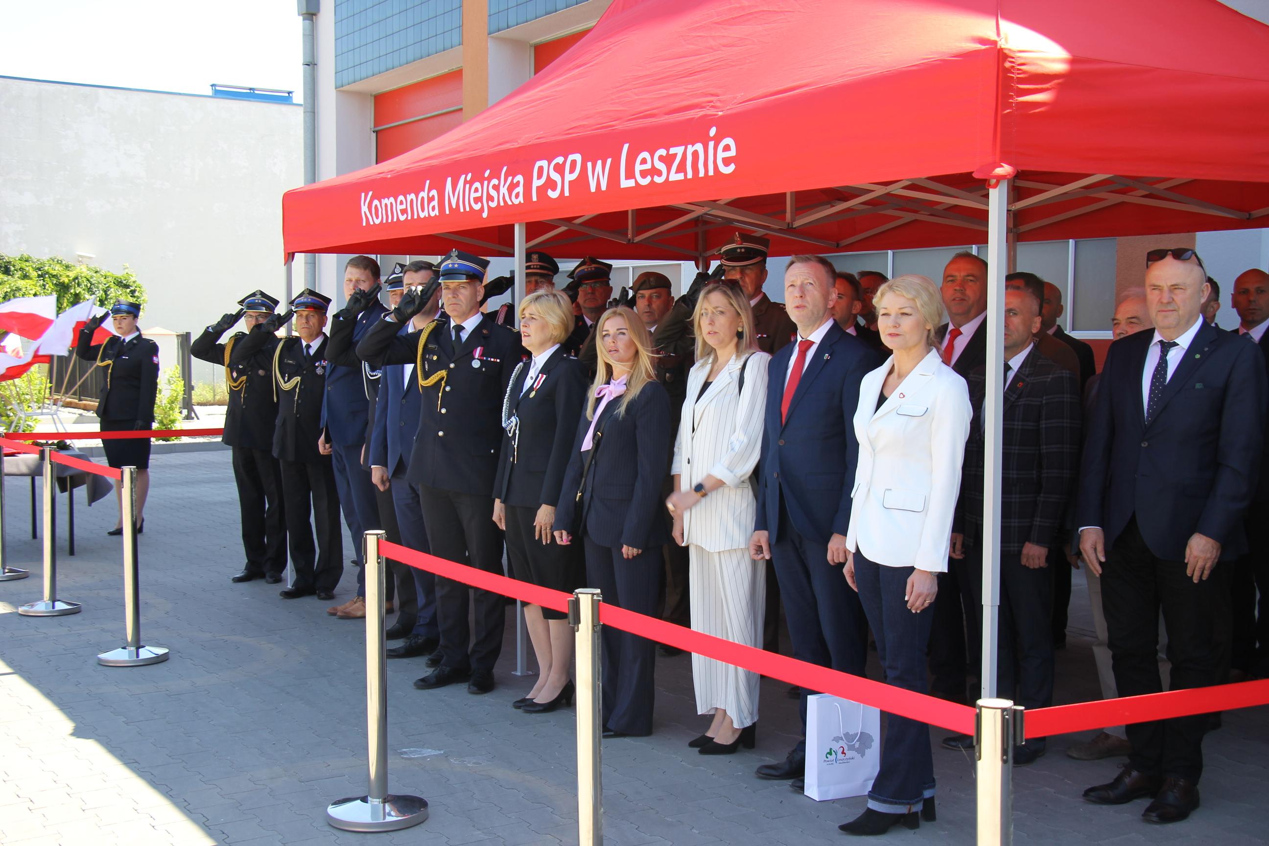 Zgodnie z ceremoniałem pożarniczym uroczystość rozpoczęła się od złożenia meldunku przez dowódcę uroczystości. Następnie dokonano uroczystego podniesienia flagi oraz odegrano hymn państwowy. Przybyłych na uroczystość strażaków oraz zaproszonych gości powitał bryg. Sebastian Kozłowski Komendant Miejski Państwowej Straży Pożarnej w Lesznie, który w swoim wystąpieniu wyraził słowa podziękowania za dotychczasową służbę i pracę, a także pogratulował wszystkim wyróżnionym strażakom.