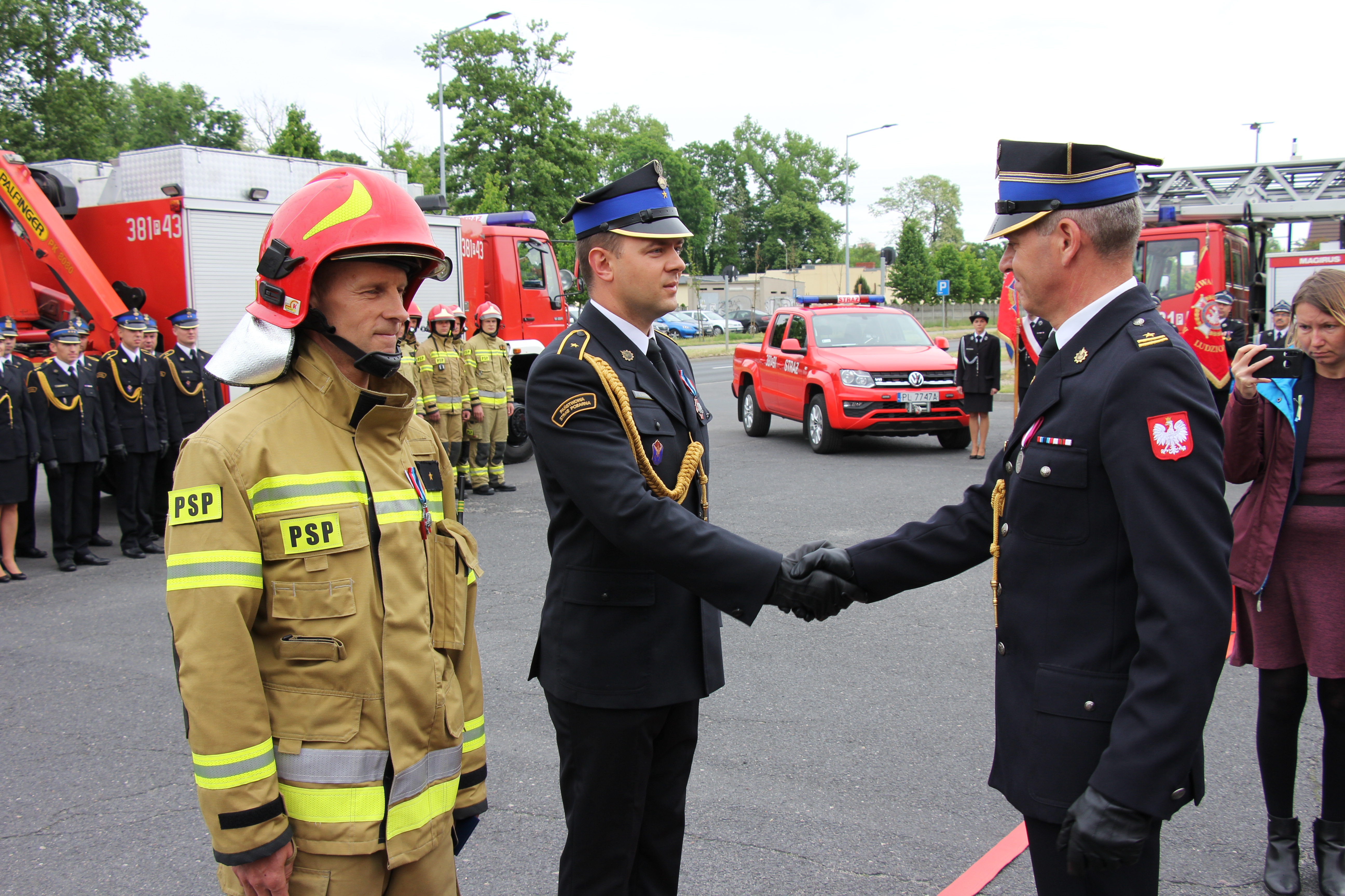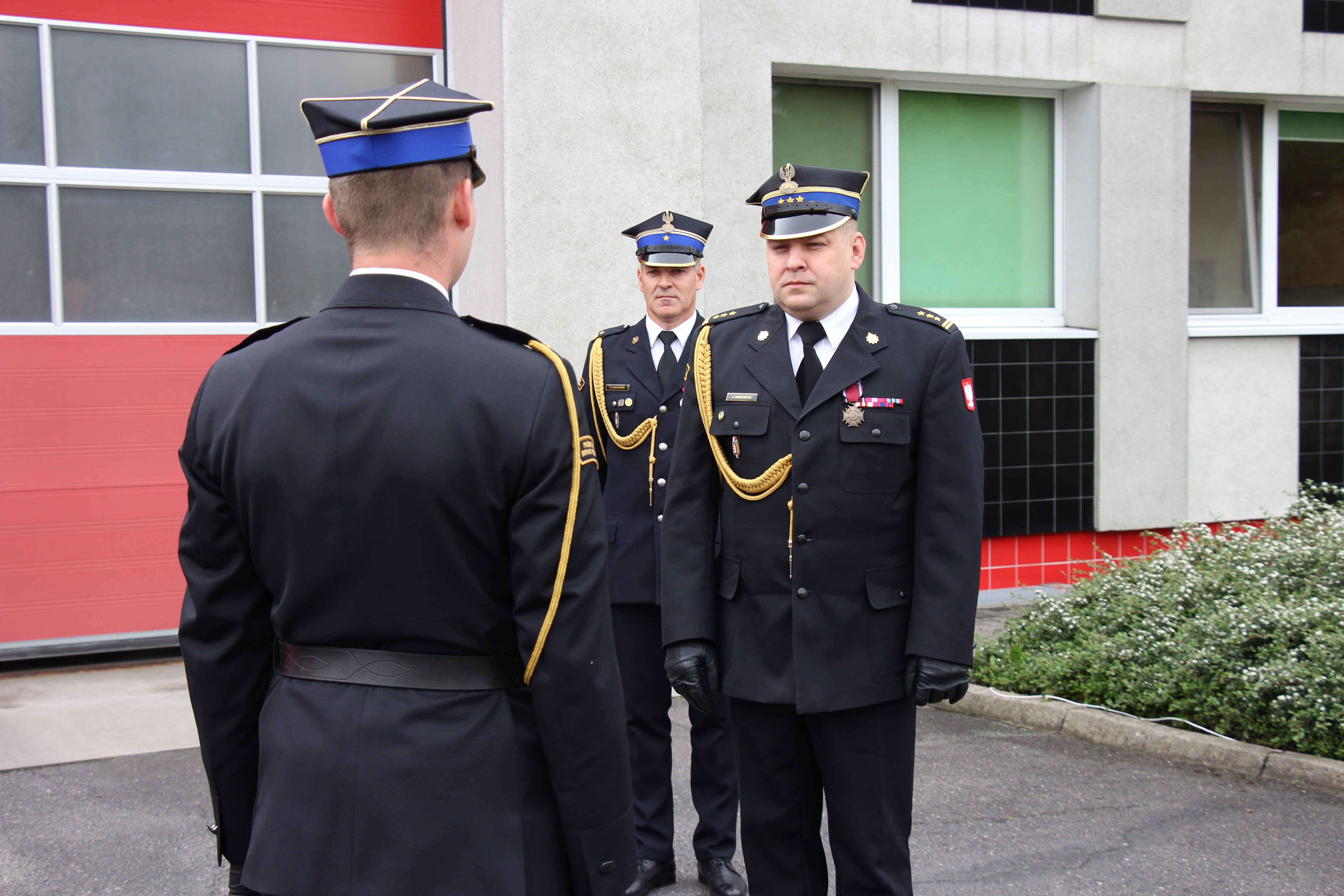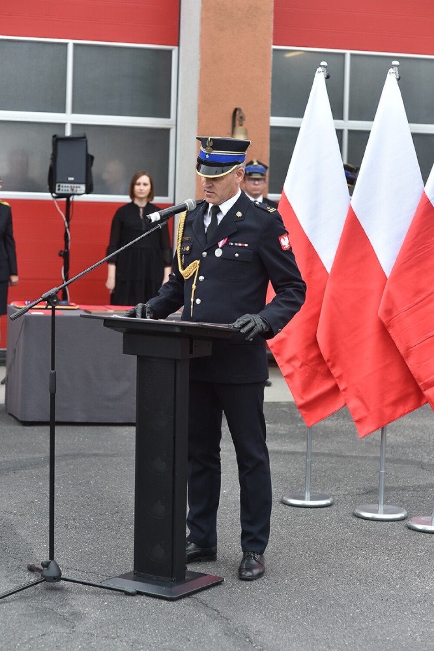 Rozpoczynając uroczysty apel dowódca uroczystości mł. kpt. Dominik Wels złożył meldunek st. bryg. Jarosławowi Zamelczykowi Zastępcy Komendanta Wojewódzkiego PSP, po którym nastąpiło podniesienie flagi państwowej oraz odegranie hymnu państwowego.