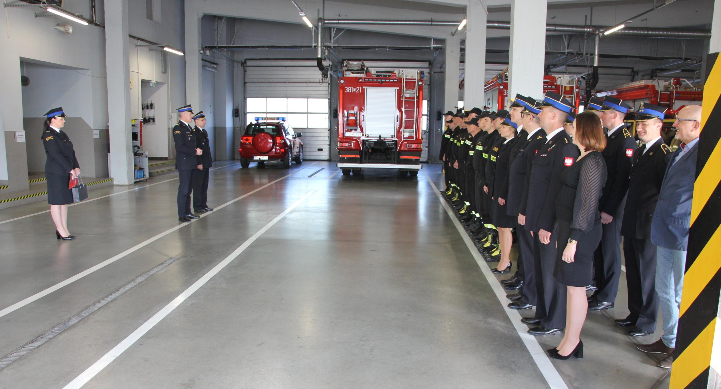 Komendant Miejski Państwowej Straży Pożarnej w Lesznie bryg. Sebastian Kozłowski podczas uroczystej zbiórki w obecności funkcjonariuszy i pracowników cywilnych komendy wręczył bryg. Jackowi Sowińskiemu list gratulacyjny oraz życzył dalszych sukcesów zawodowych i wszelkiej pomyślności w pełnieniu służby w leszczyńskiej komendzie.