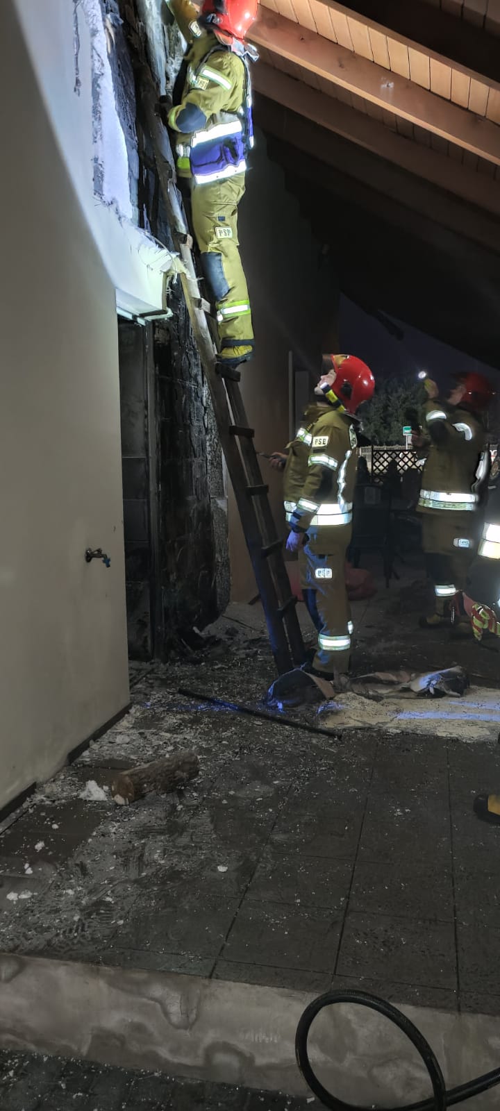 Pierwszy zastęp przybyły na miejsce zdarzenia zastał nadpaloną elewację budynku oraz spalone pomieszczenie kotłowni. W wyniku rozpoznania ustalono, że do pożaru doszło w pomieszczeniu kotłowni stałopalnej, a elewacja budynku zapaliła się poprzez przedostanie się ognia kratką wentylacyjną. Ponadto ustalono, że właściciel podjął skuteczną próbę ugaszenia pożaru przed przybyciem Jednostek Ochrony Przeciwpożarowej. Działania strażaków polegały na zabezpieczeniu miejsca zdarzenia, odłączeniu prądu w budynku, przewietrzeniu pomieszczenia kotłowni, rozebraniu nadpalonej elewacji, w celu sprawdzenia występowania innych zarzewi ognia oraz sprawdzeniu urządzeniami pomiarowymi całej kubatury części mieszkalnej.