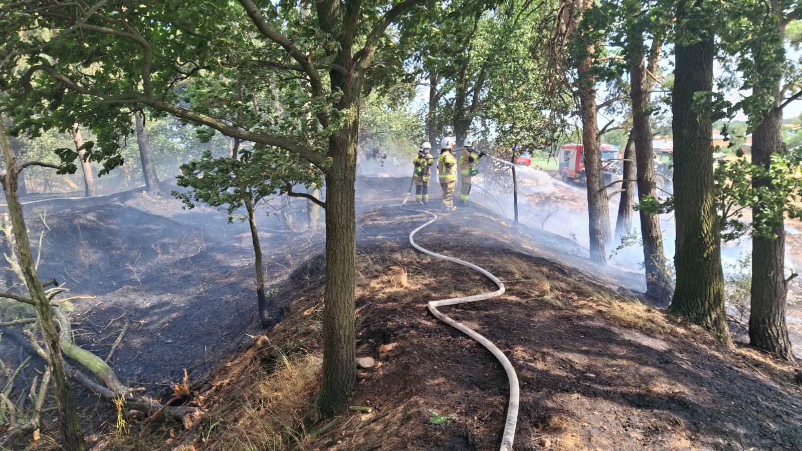Pierwszy z nich miał miejsce w miejscowości Kleszczewo, gmina Osieczna. W sobotę 5 lipca 2025 r. w godzinach popołudniowych ogień pochłoną około 5,5 ha zboża na pniu, 0,5 ha ścierniska i około 0,1 ha terenu zadrzewionego. W działaniach gaśniczych brało udział 7 zastępów z Jednostki Ratowniczo-Gaśniczej (JRG) w Lesznie oraz okolicznych Ochotniczych Straży Pożarnych (tj. OSP Osieczna, OSP Krzemieniewo, OSP Pawłowice, OSP Kąkolewo, OSP Lipno i OSP Krzywiń). Działania te były wspierane ciągnikami rolniczymi wyposażonymi w beczki z wodą, agregaty i pługi. Straty oszacowano na 75 tys. zł.