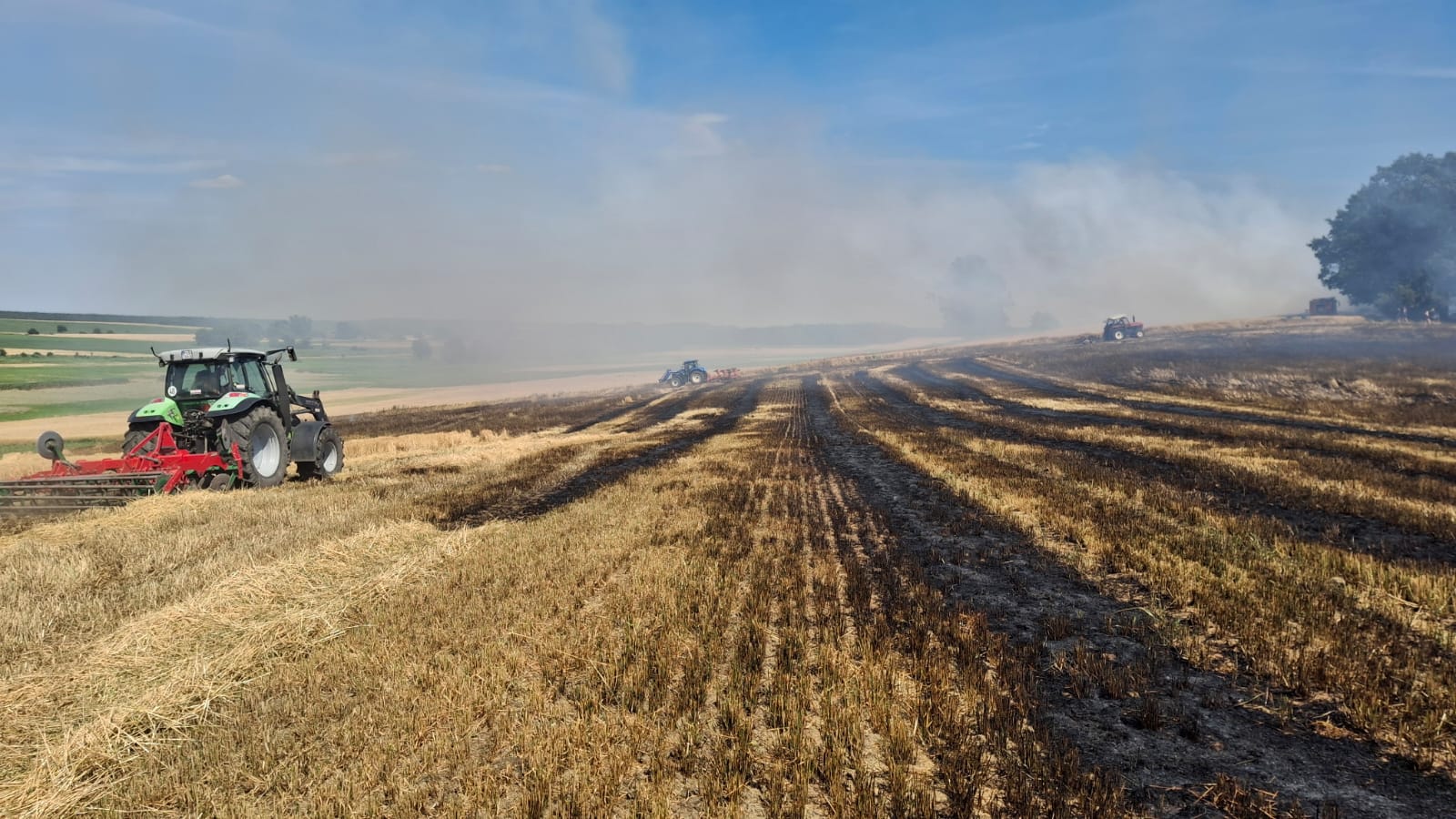 Mimo że żniwa w wielu miejscach dobiegły końca to nadal trwają prace polowe związane z przygotowaniem pól do siewu roślin ozimych lub jarych, a wysokie temperatury i suche rośliny wciąż sprzyjają pożarom, dlatego strażacy przypominają o konieczności regularnego czyszczenia maszyn, unikania ognia otwartego w pobliżu pól oraz posiadania sprawnego sprzętu gaśniczego.