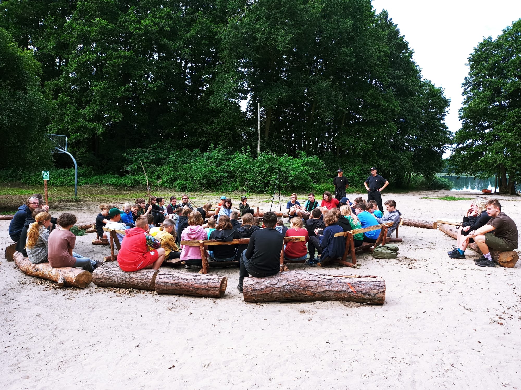 Dodatkowo odbyła się również pogadanka z 61 uczestnikami turnusu, która miała na celu przedstawienie młodzieży podstawowych zasad bezpieczeństwa (m. in. postępowania na skutek wystąpienia zagrożenia pożarowego bądź gwałtownych burz i wichur).