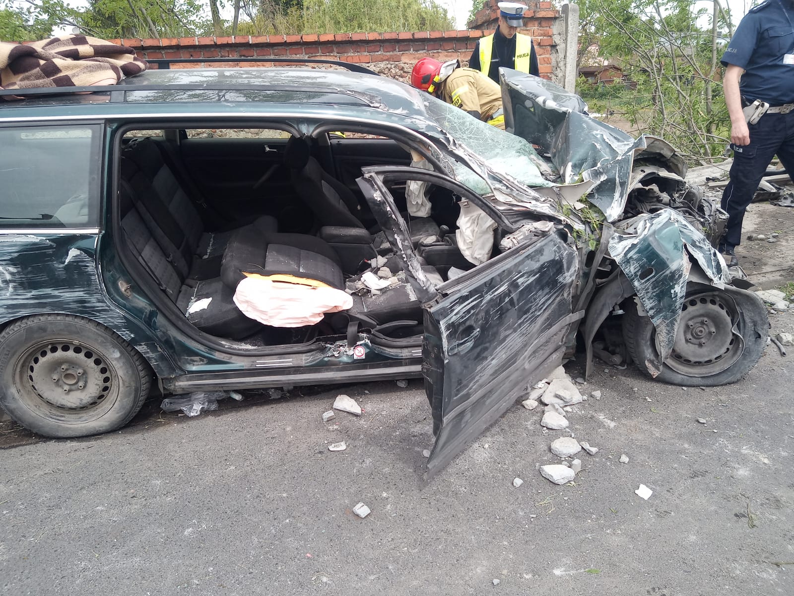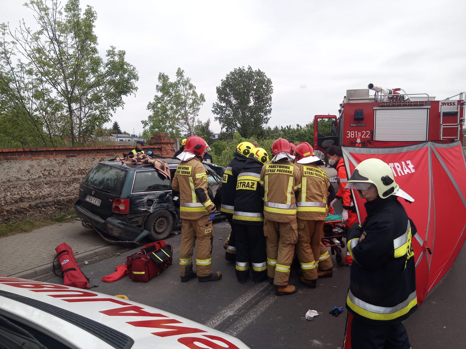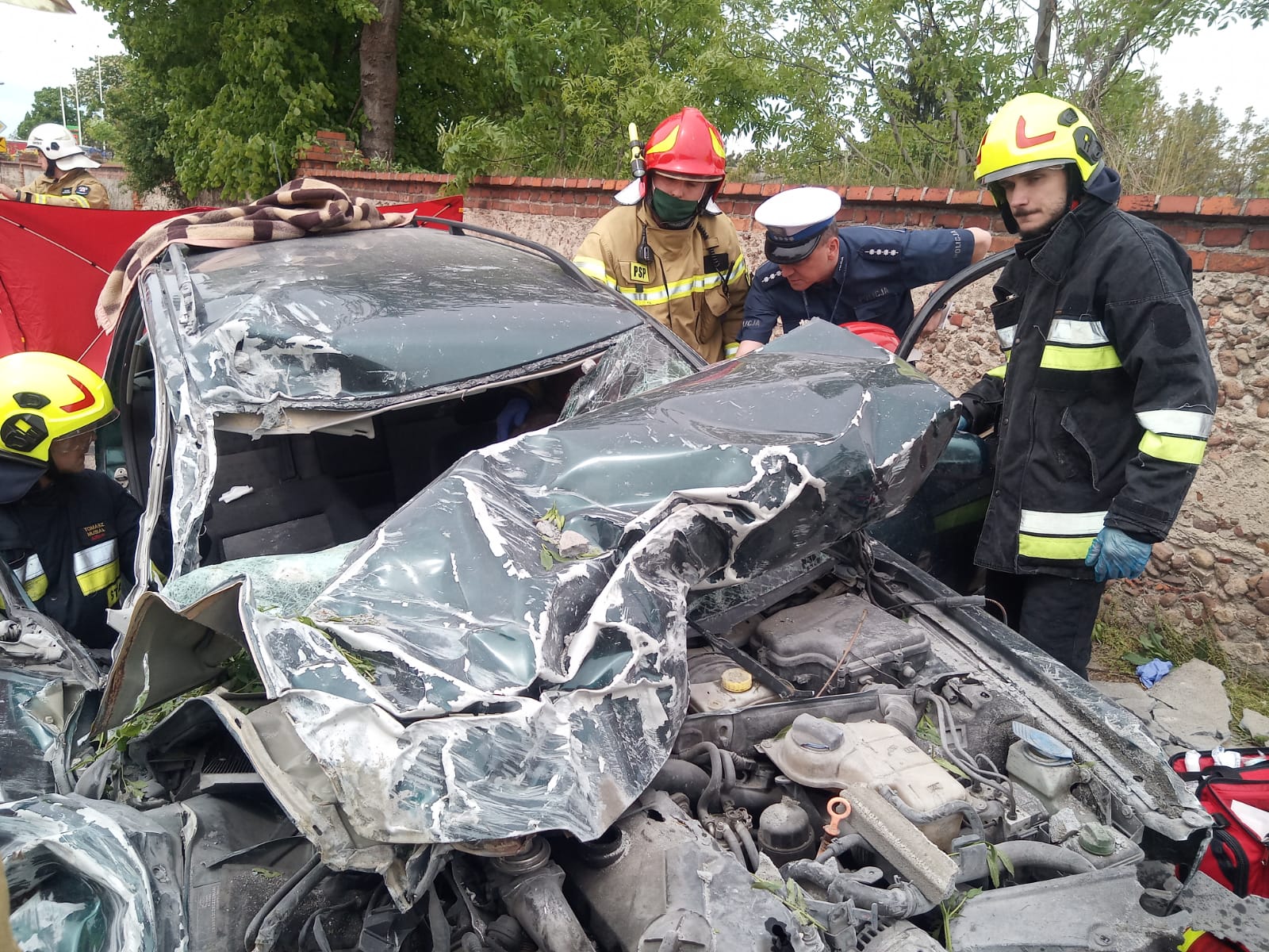 Po przybyciu na miejsce zdarzenia strażacy zabezpieczyli miejsce zdarzenia oraz udzielono kwalifikowanej pierwszej pomocy rannym w zdarzeniu. Poszkodowani byli pod opieką strażaków do czasu przybycia Zespołów Ratownictwa Medycznego. Na miejsce wezwano Lotnicze Pogotowie Ratunkowe. Zabezpieczono lądowisko dla helikoptera LPR. Na miejsce przybył również Komendant Miejski Państwowej Straży Pożarnej w Lesznie - mł. bryg. Sebastian Kozłowski, Oficer Prasowy - mł. kpt. Szymon Kurpisz, Dowódca JRG – mł. bryg. Jakub Stryjak oraz Naczelnik Wydziału Operacyjno – Szkoleniowego – st. kpt. Sławomir Durka. Do szpitala zostały zabrane dwie osoby. Trzecia odmówiła pomocy. Po zdarzeniu pojazd został odholowany przez pomoc drogową, natomiast z jezdni usunięto resztki powypadkowe oraz zebrano płyny pokolizyjne.