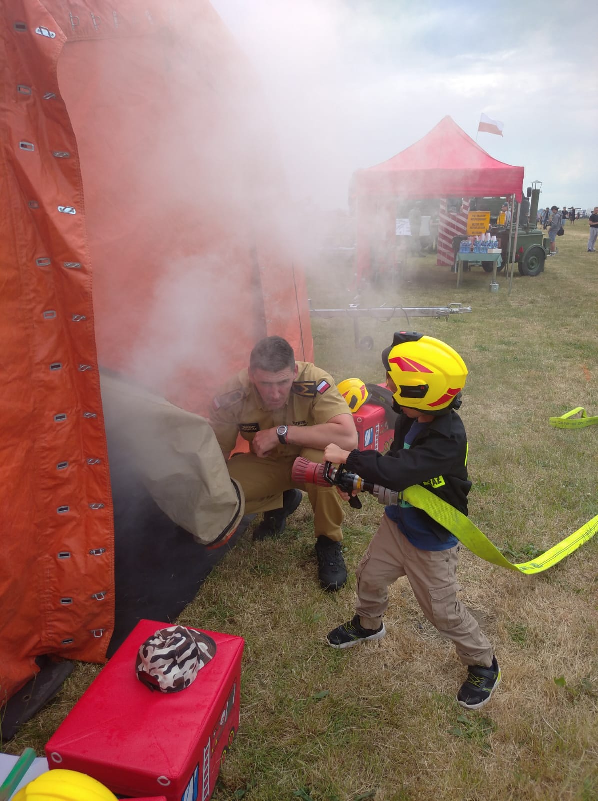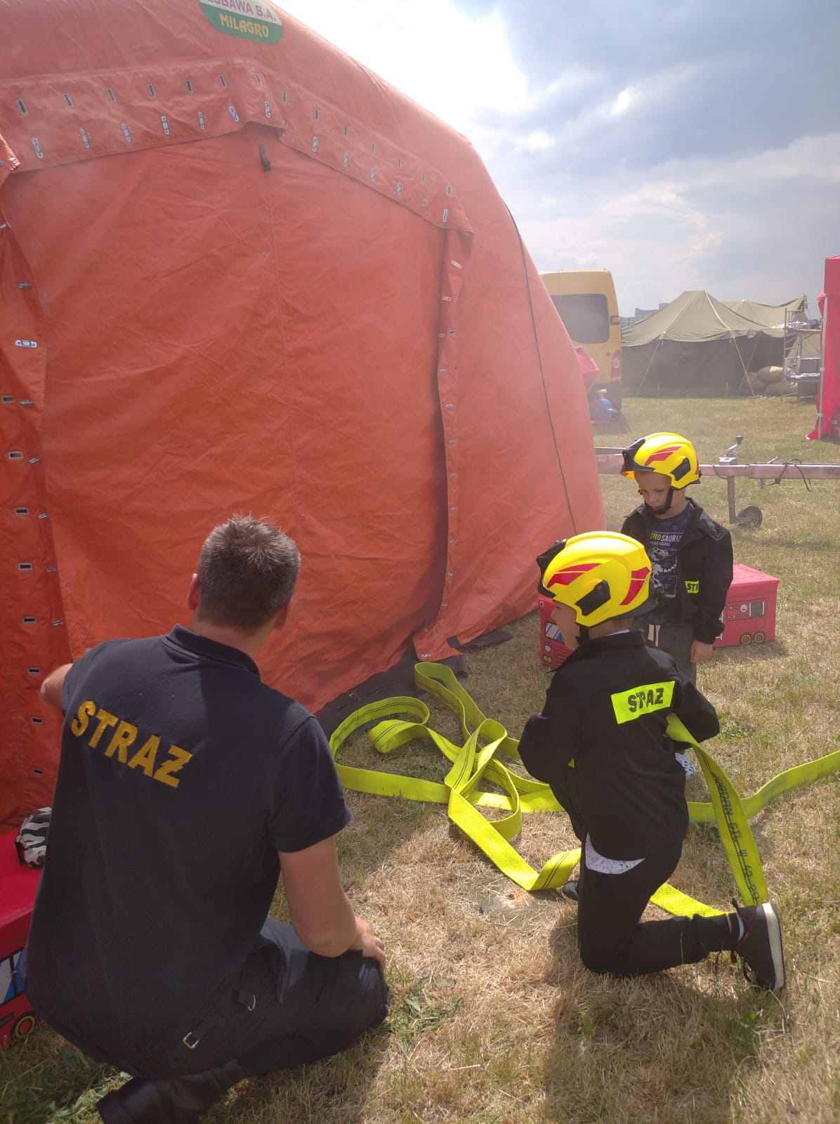 Dużym zainteresowaniem cieszyło się stanowisko, na którym dzieci w ubraniu strażackim wraz ze swoimi rodzicami mogli wczuć się w rolę ratownika i przy użyciu linii gaśniczej zakończonej prądownicą wodną mogli uratować z zadymionego namiotu poszkodowane misie – maskotki. W drugim etapie wspólnie z opiekunami należało rozwiązać krzyżówkę w ramach przyswojenia wiedzy dotyczącej szeroko rozumianego bezpieczeństwa pożarowego. Spore zainteresowanie wzbudził również sektor wystawienniczy, w którym zaprezentowano sprzęt grupy ratownictwa chemicznego - ekologicznego funkcjonującej w Komendzie Miejskiej Państwowej Straży Pożarnej w Lesznie, a także łódź motorowa, która jest wykorzystywana przez strażaków do działań poszukiwawczo – ratowniczych na akwenach wodnych naszego powiatu. Najmłodsi goście mieli możliwość zasiąść za sterem łodzi oraz samochodu ratownictwa chemicznego i wyobrazić sobie scenę, w której odgrywają główną rolę kierującego działaniami ratowniczymi. Dla opiekunów dzieci również nie zabrakło atrakcji. Przy stoisku edukacyjnym prezentowano na planszy symulacyjnej zagrożenia pożarowe oraz zagadnienia związane z bezpieczną eksploatacją urządzeń grzewczych oraz sposobami zabezpieczenia swoich domów i mieszkań przed powstaniem tlenku węgla. Pomimo letniej aury, temat związany z uświadamianiem społeczeństwa o zagrożeniach życia jest zawsze aktualny.