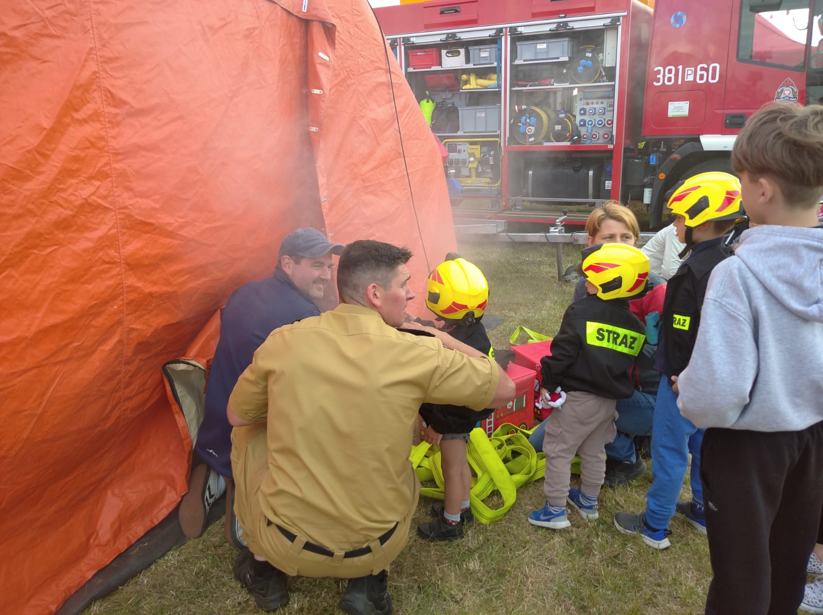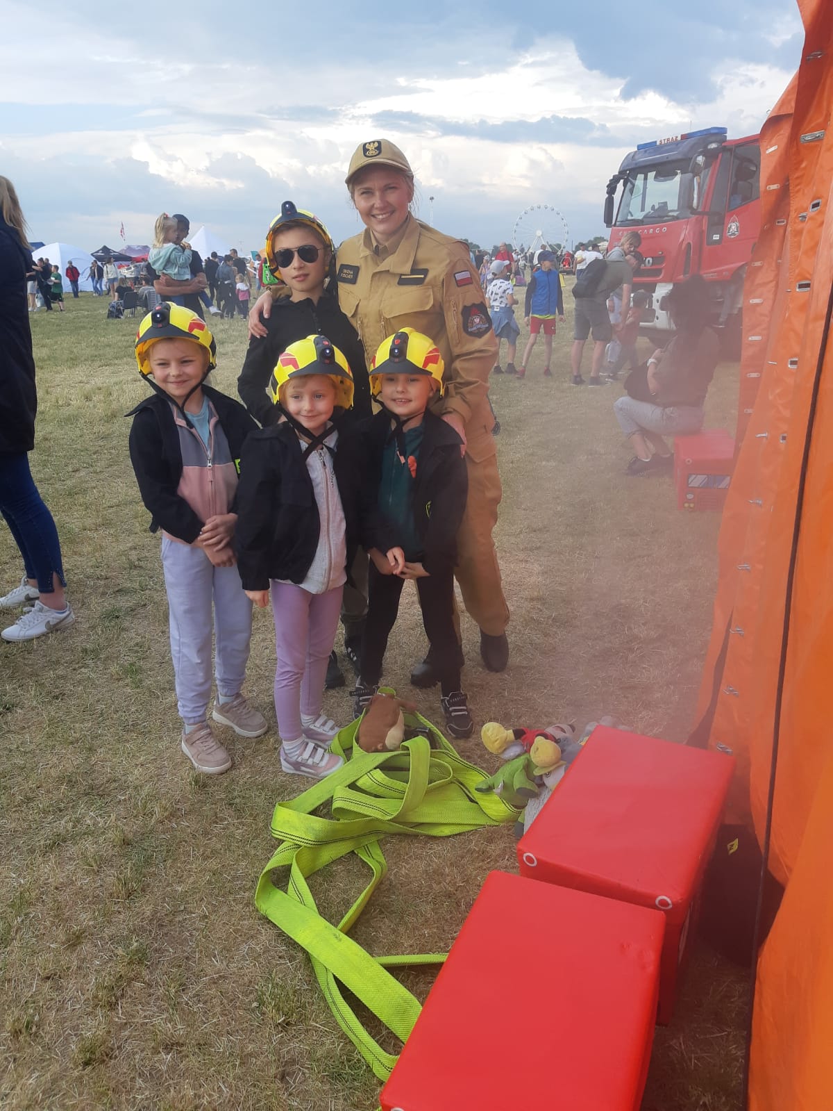 Ponadto dla najmłodszych komenda przygotowała tekturowe gadżety, oraz słodki poczęstunek, które były wręczane aktywnie uczestniczącym w pokazach dzieciom. Mamy nadzieję, że dzięki takim akcjom nasza świadomość związana z bezpieczeństwem pożarowym będzie nieustannie wzrastać.