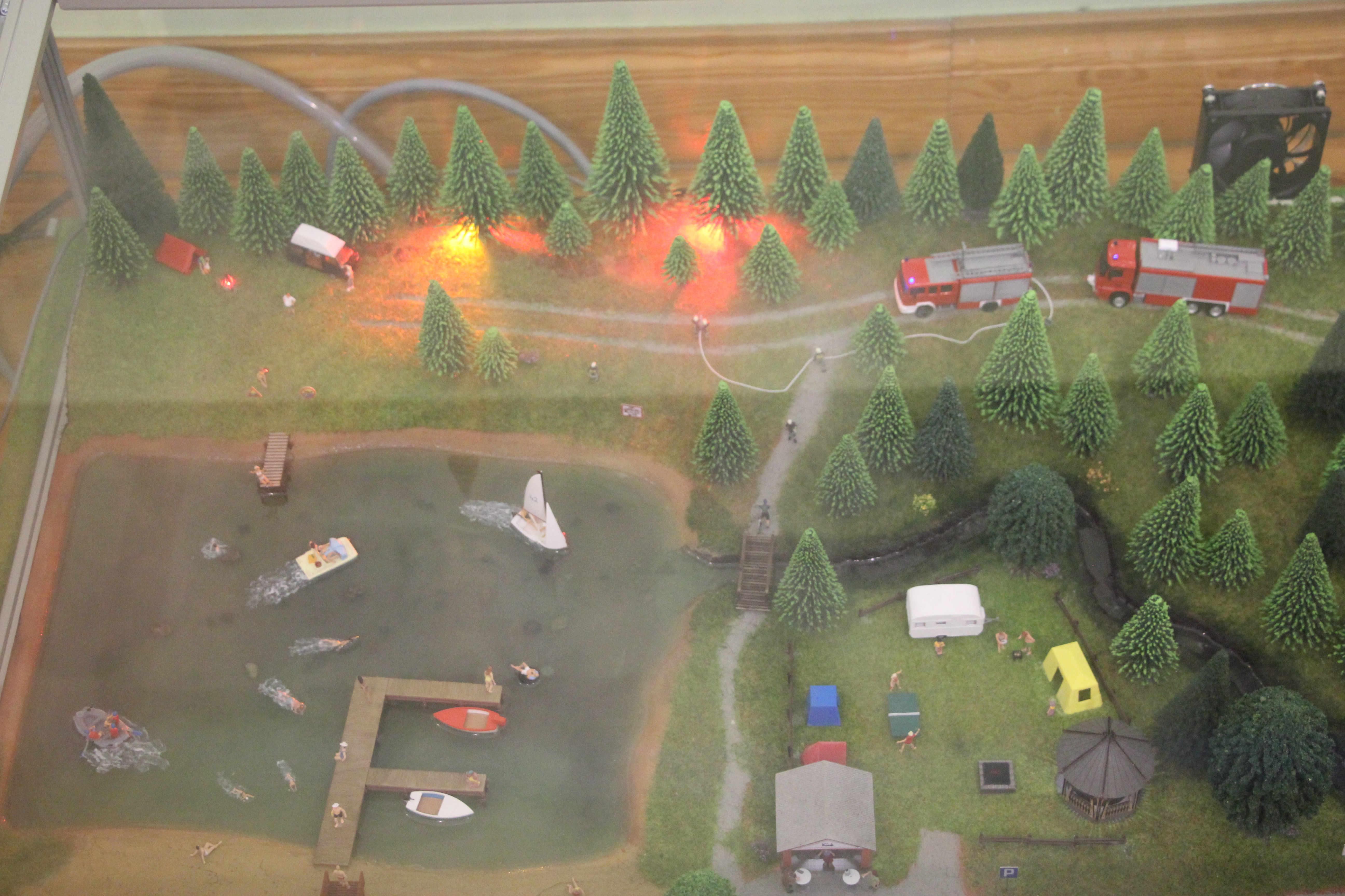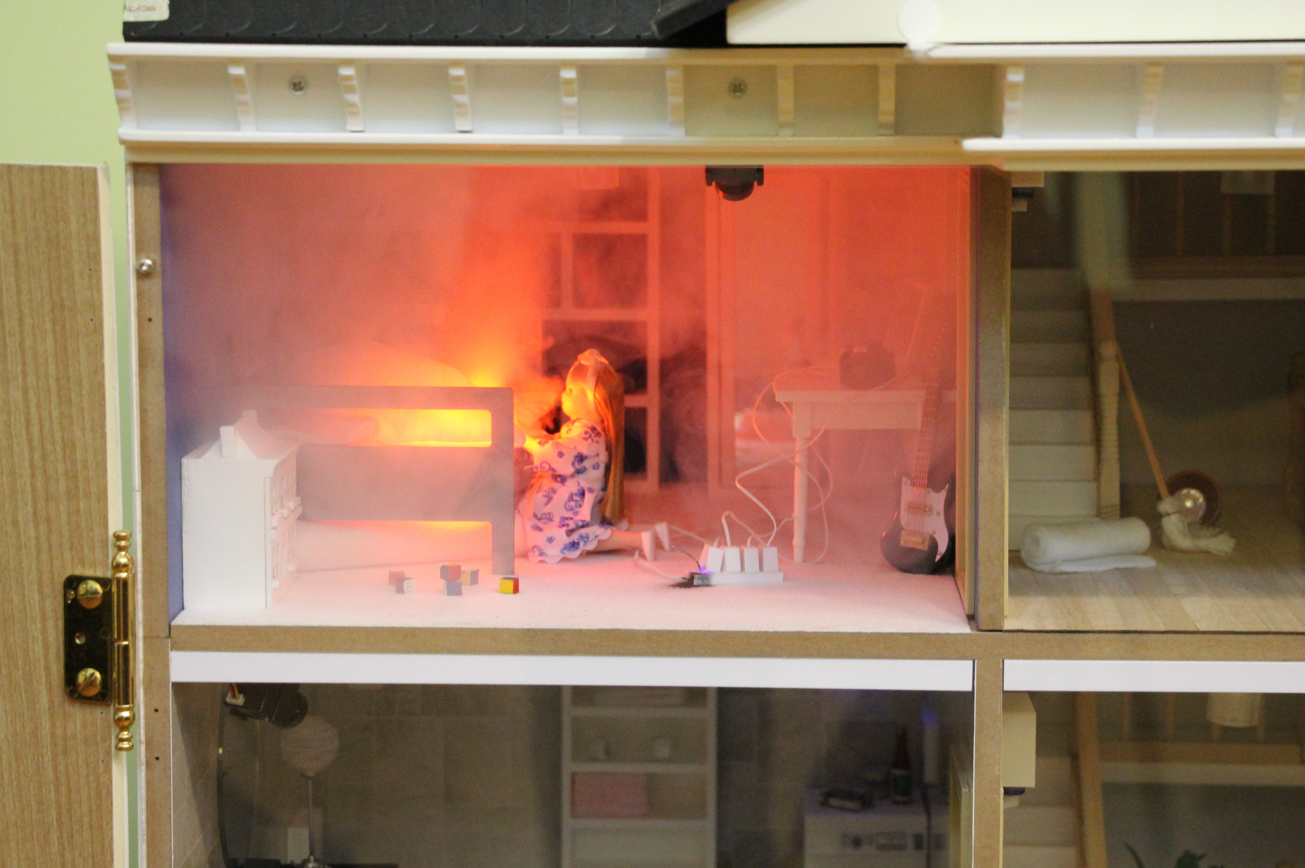 - symulacji zagrożenia pożarowego za pomocą efektów specjalnych (światło, dźwięk, dym)