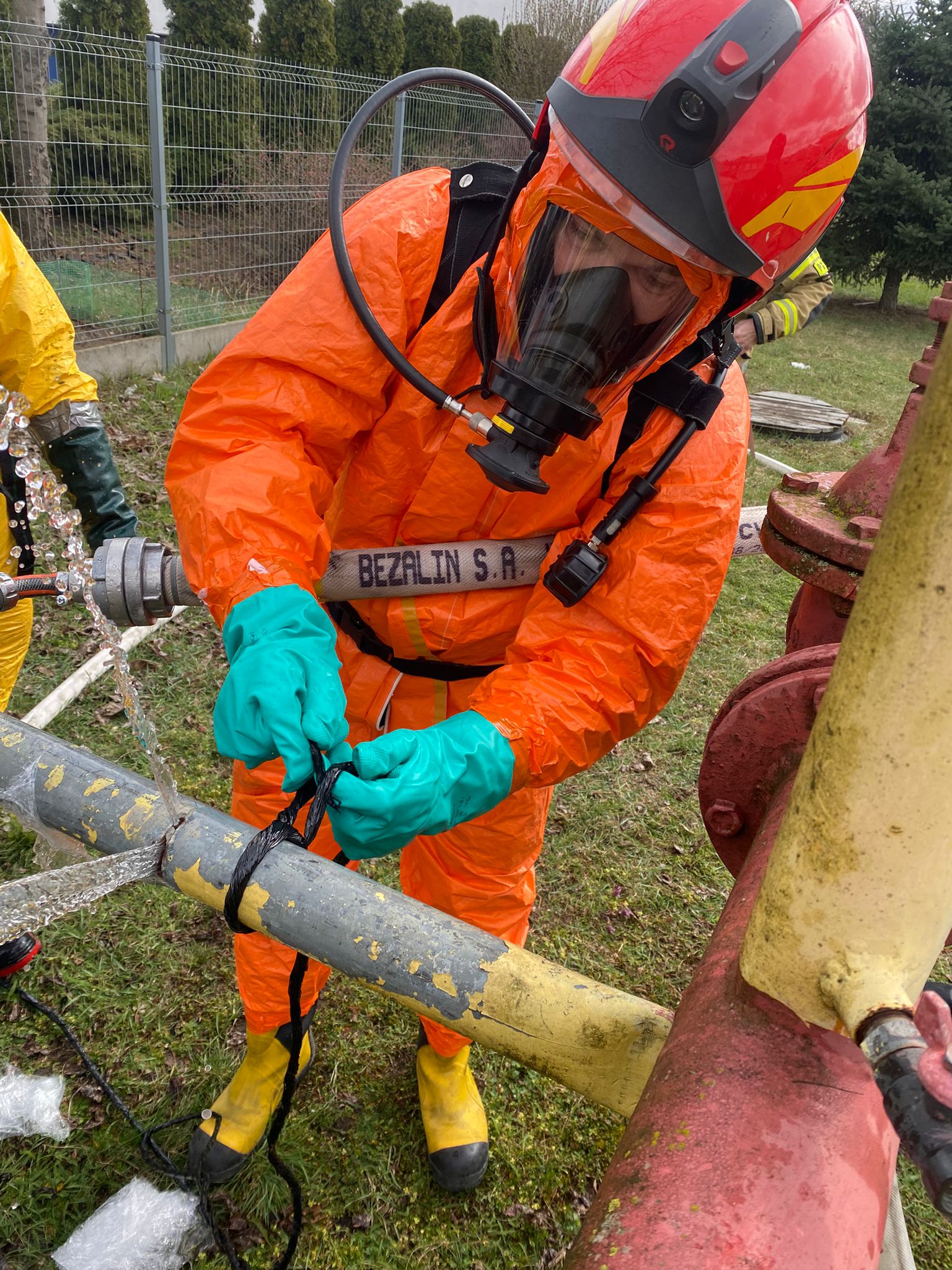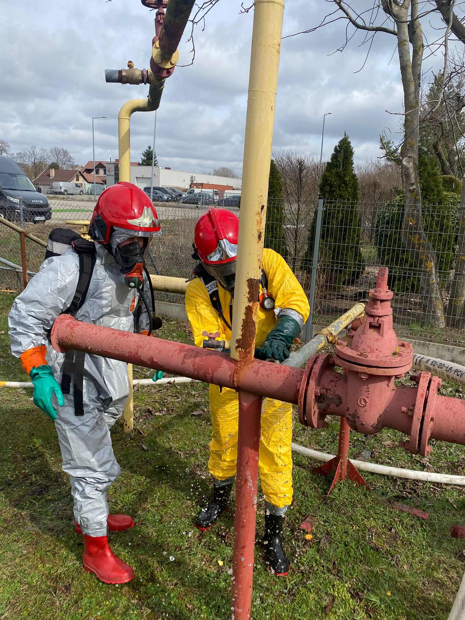 Zakres tematyczny szkolenia obejmował zagrożenia związane z transportem i magazynowaniem materiałów niebezpiecznych, zasady przeprowadzania pomiarów, wyznaczenia strefy niebezpiecznej, sposoby uszczelniania wycieków, zasady kontroli pracy ratowników w sprzęcie ochrony układy oddechowego.