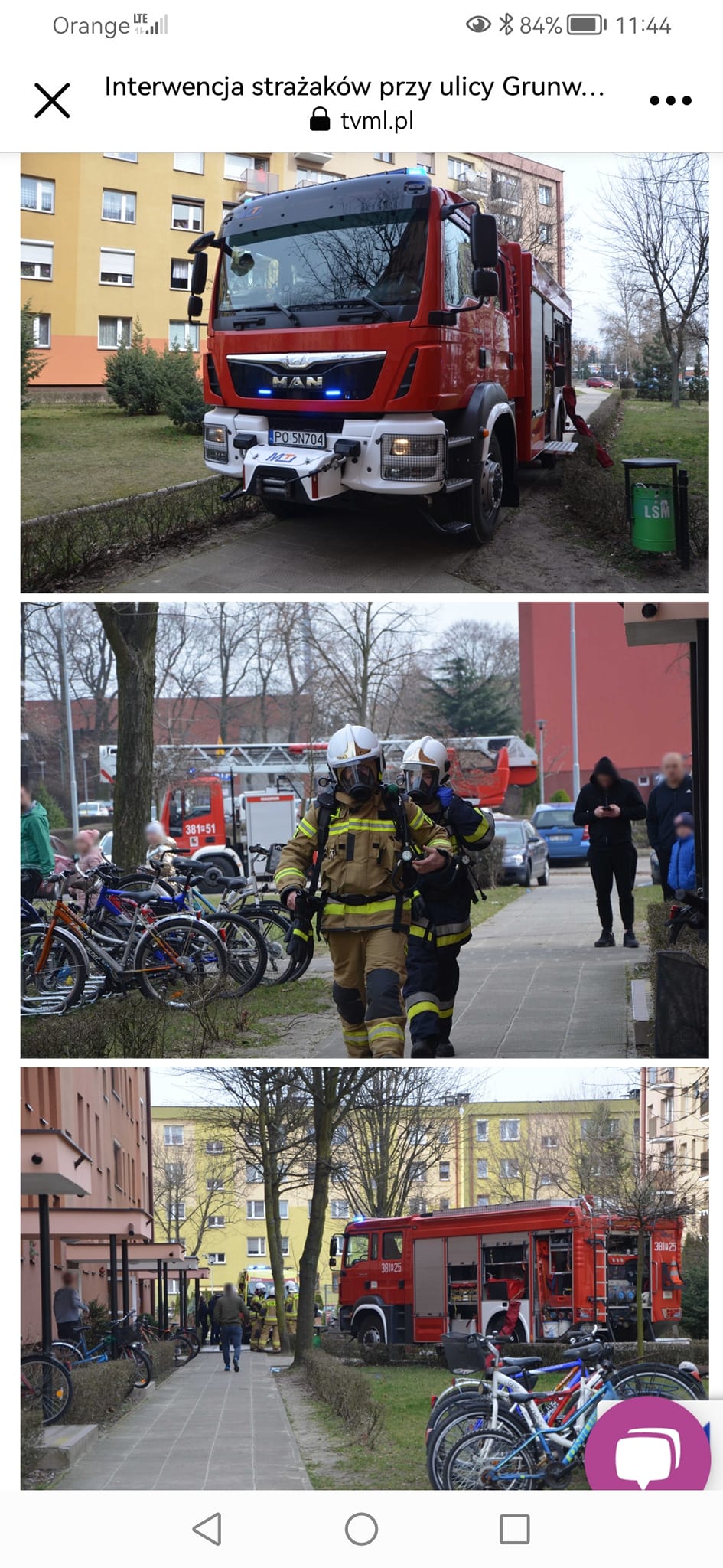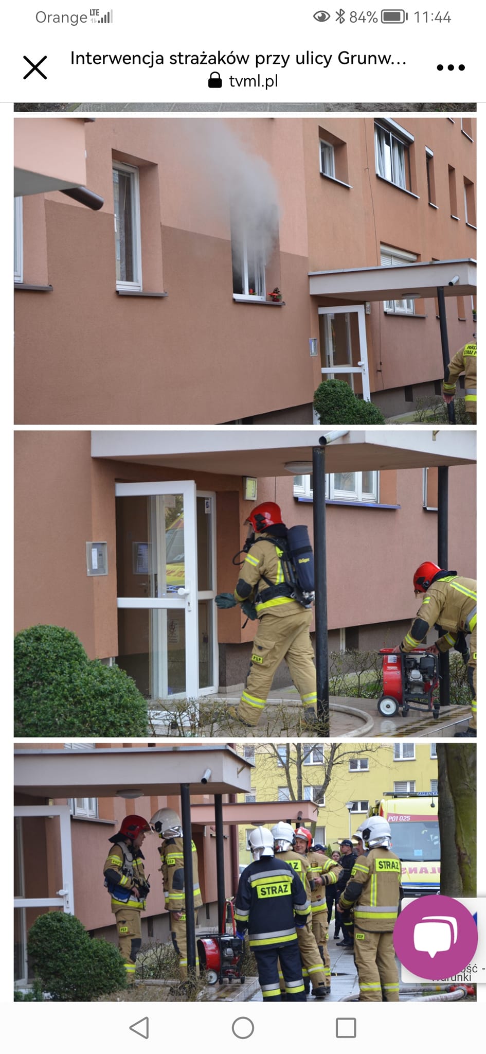 Do kolejnego pożaru mieszkania doszło przy ul. Grunwaldzkiej w Lesznie, gdzie strażacy podczas działań ewakuowali z płonącego mieszkania osobę poszkodowaną. Osobie udzielono kwalifikowanej pierwszej pomocy i przekazano zespołowi ratownictwa medycznego. Spaleniu uległo pomieszczenie kuchenne prawdopodobnie na skutek zwarcia instalacji elektrycznej. W trakcie działań ewakuowano z budynku 6 ludzi,