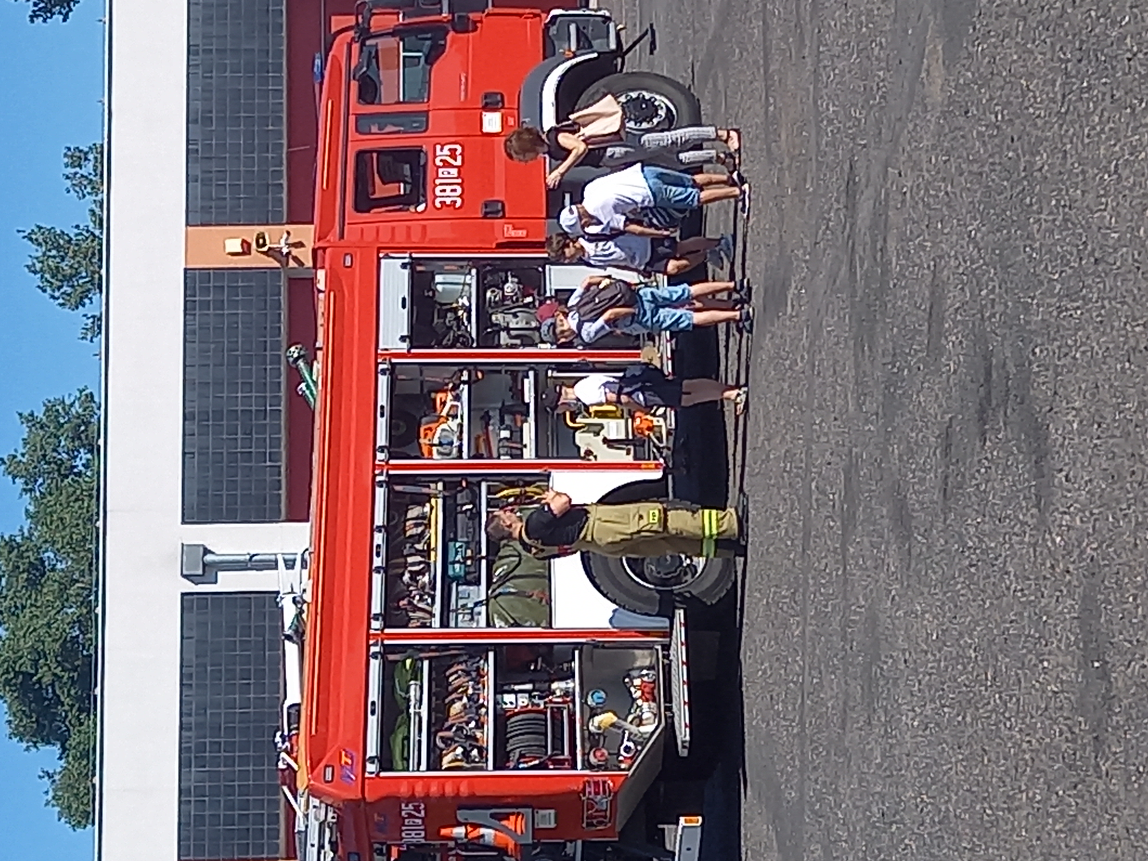 Zapoznali się z specyfiką pracy strażaka oraz wyposażeniem samochodów pożarniczych. Uczniowie przez chwilę mogli poczuć się jak prawdziwi strażacy lejąc wodę z węża strażackiego. Życzymy wszystkim uczniom bezpiecznych i słonecznych wakacji.