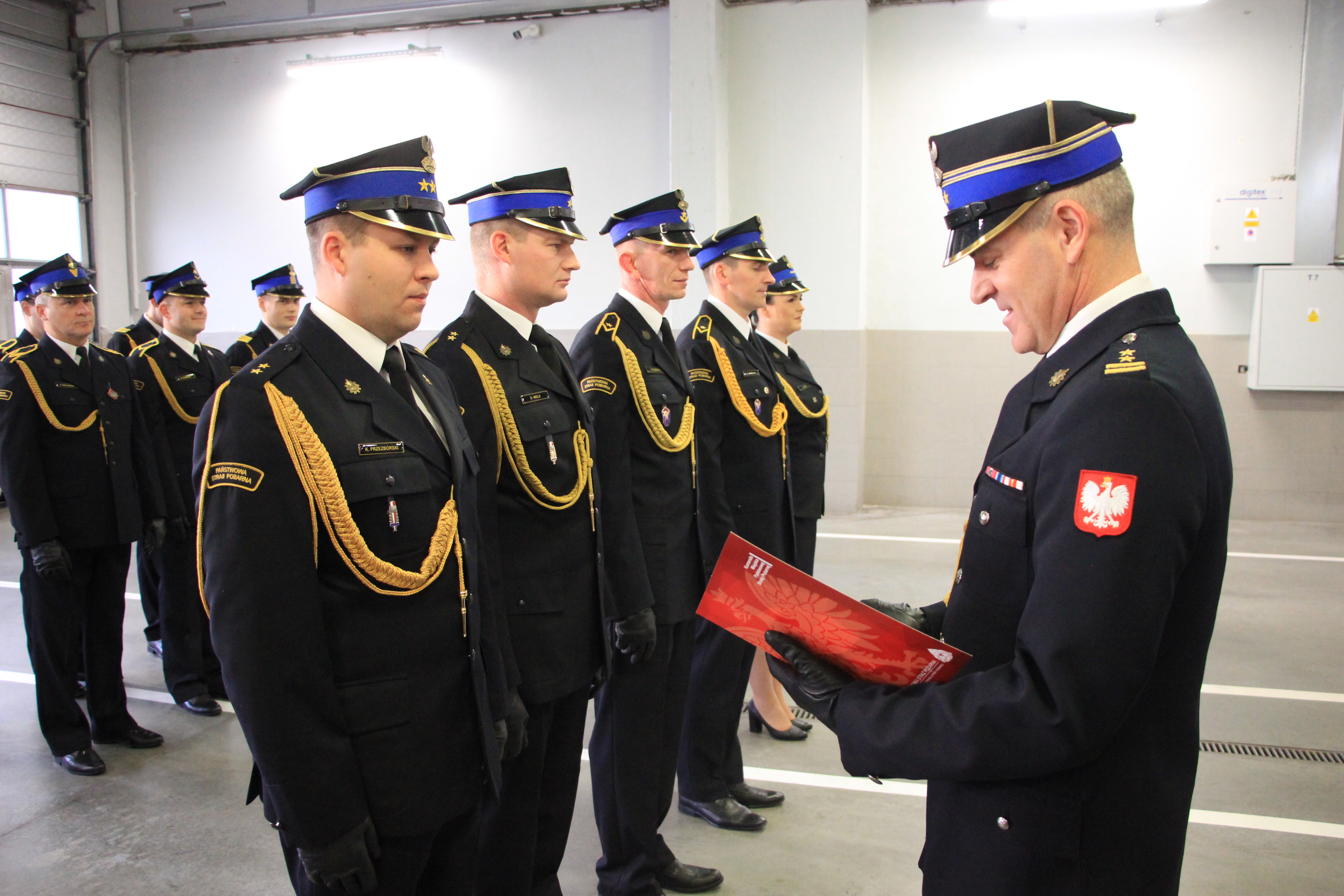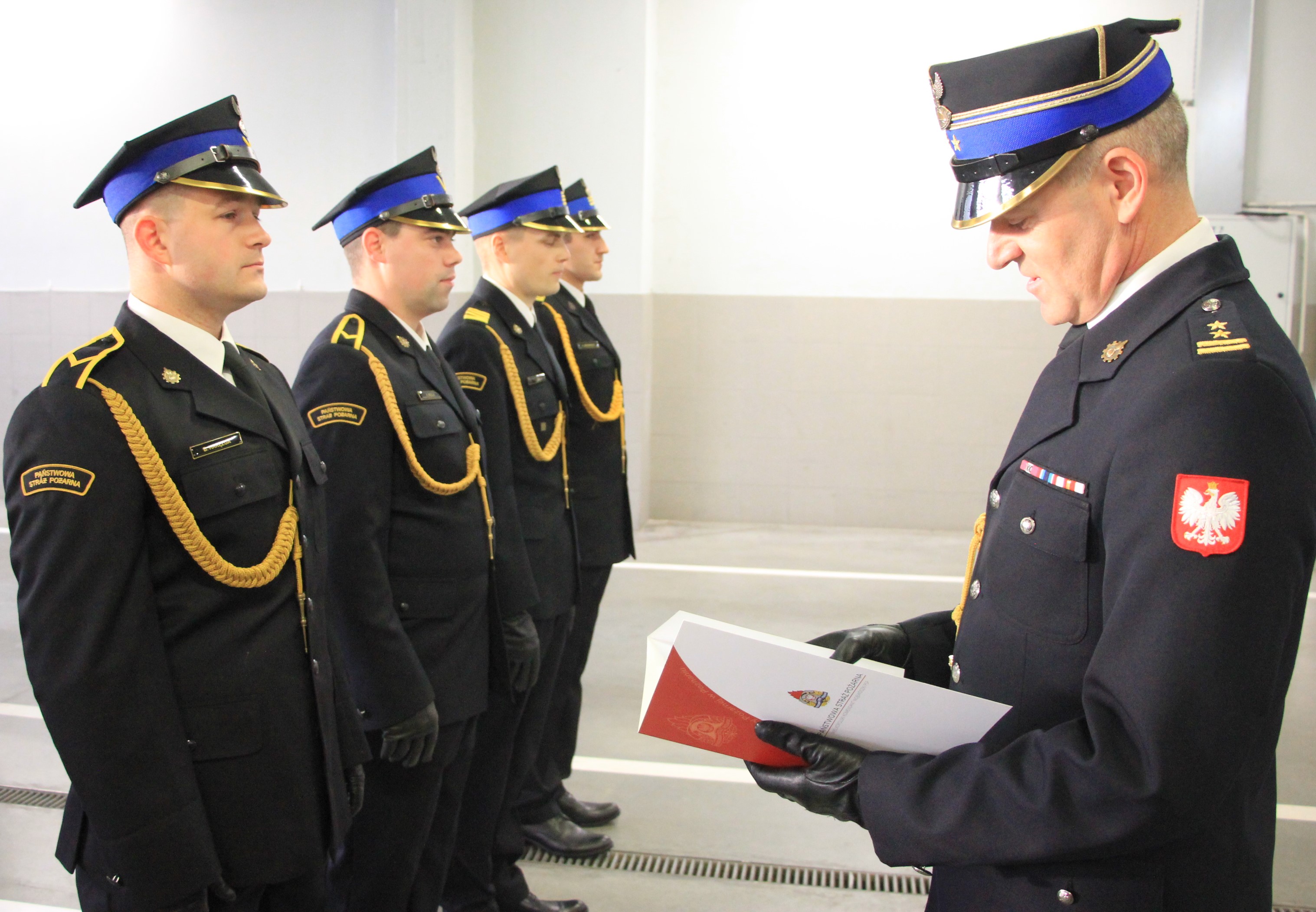 Podczas uroczystości w obecności funkcjonariuszy i pracowników cywilnych komendy bryg. Sebastian Kozłowski Komendant Miejski Państwowej Straży Pożarnej w Lesznie oraz mł. bryg. Paweł Plewa Zastępca Komendanta Miejskiego Państwowej Straży Pożarnej w Lesznie wręczyli czterem awansowanym strażakom akty nadania wyższych stopni służbowych oraz pięciu funkcjonariuszom decyzje w sprawie mianowania na wyższe stanowiska służbowe.