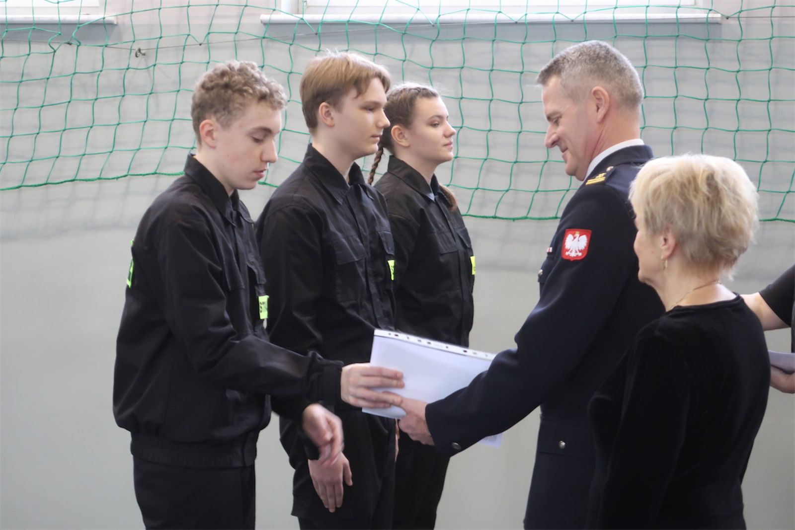 W uroczystościach uczestniczył bryg. Sebastian Kozłowski Komendant Miejski Państwowej Straży Pożarnej w Lesznie, który wspólnie z Dyrektor Szkoły Panią Marią Koroniak dokonał ceremonii pasowania uczniów. W uroczystości udział wzięło kilkudziesięciu kadetów i kadetek, którzy otrzymali Patenty Pasowania.