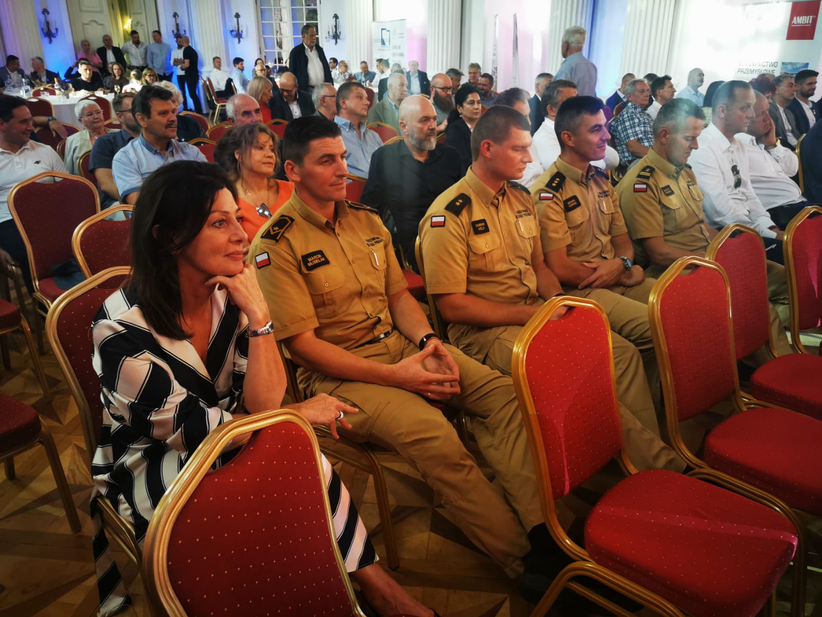 Na Sali „balowej” nie zabrakło również przedstawicieli wydziału pionu ds. Kontrolno - Rozpoznawczych Komendy Miejskiej Państwowej Straży Pożarnej w Lesznie na czele z Komendantem Miejskim PSP w Lesznie- bryg. mgr inż. Sebastianem Kozłowskim, którzy mieli okazję podzielić się zdobytą wiedzą oraz doświadczeniem z dziedziny ochrony przeciwpożarowej w złożonym procesie budowlanym.