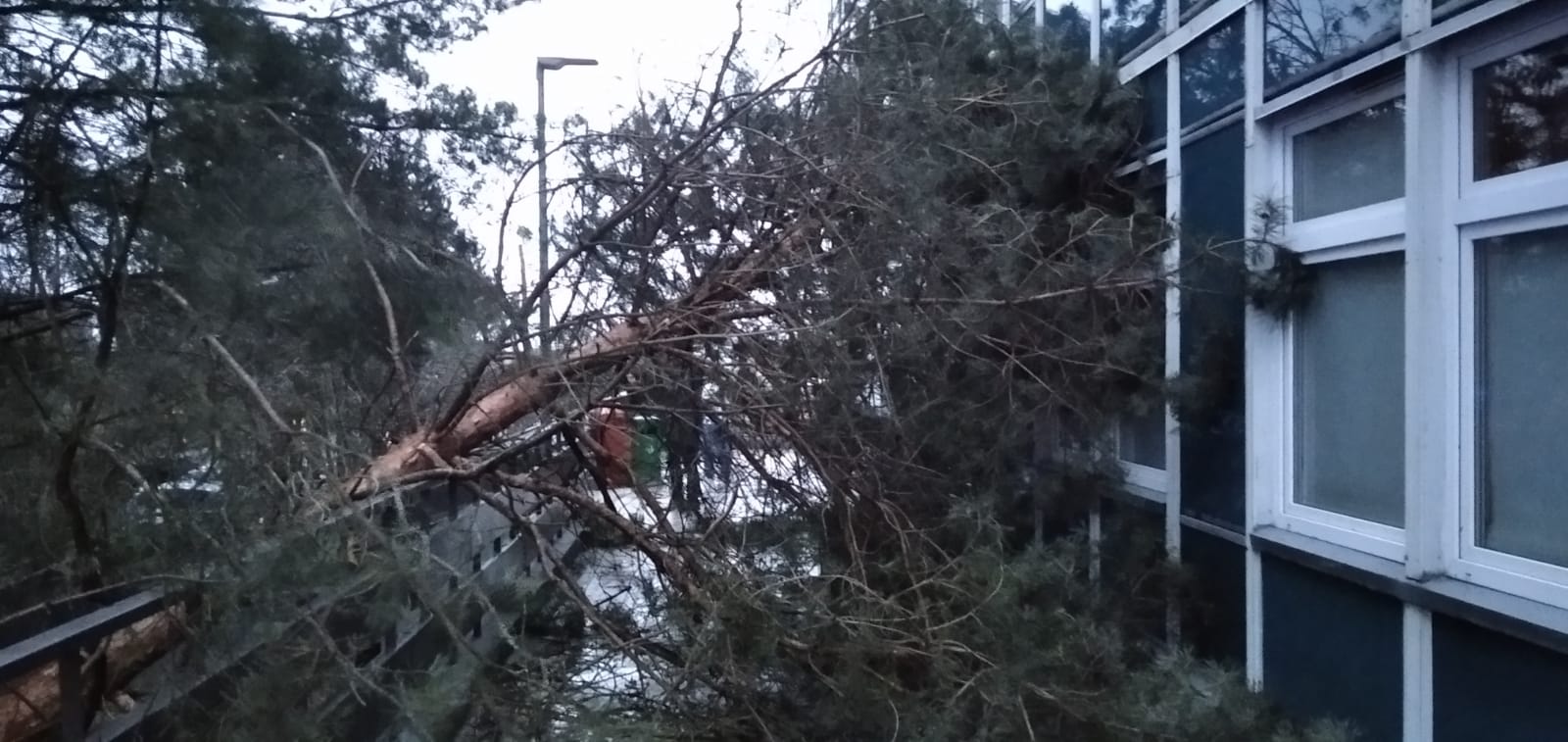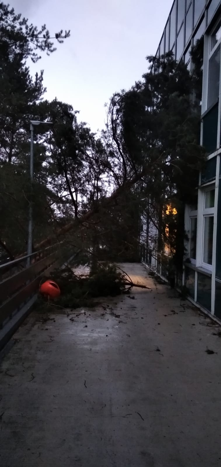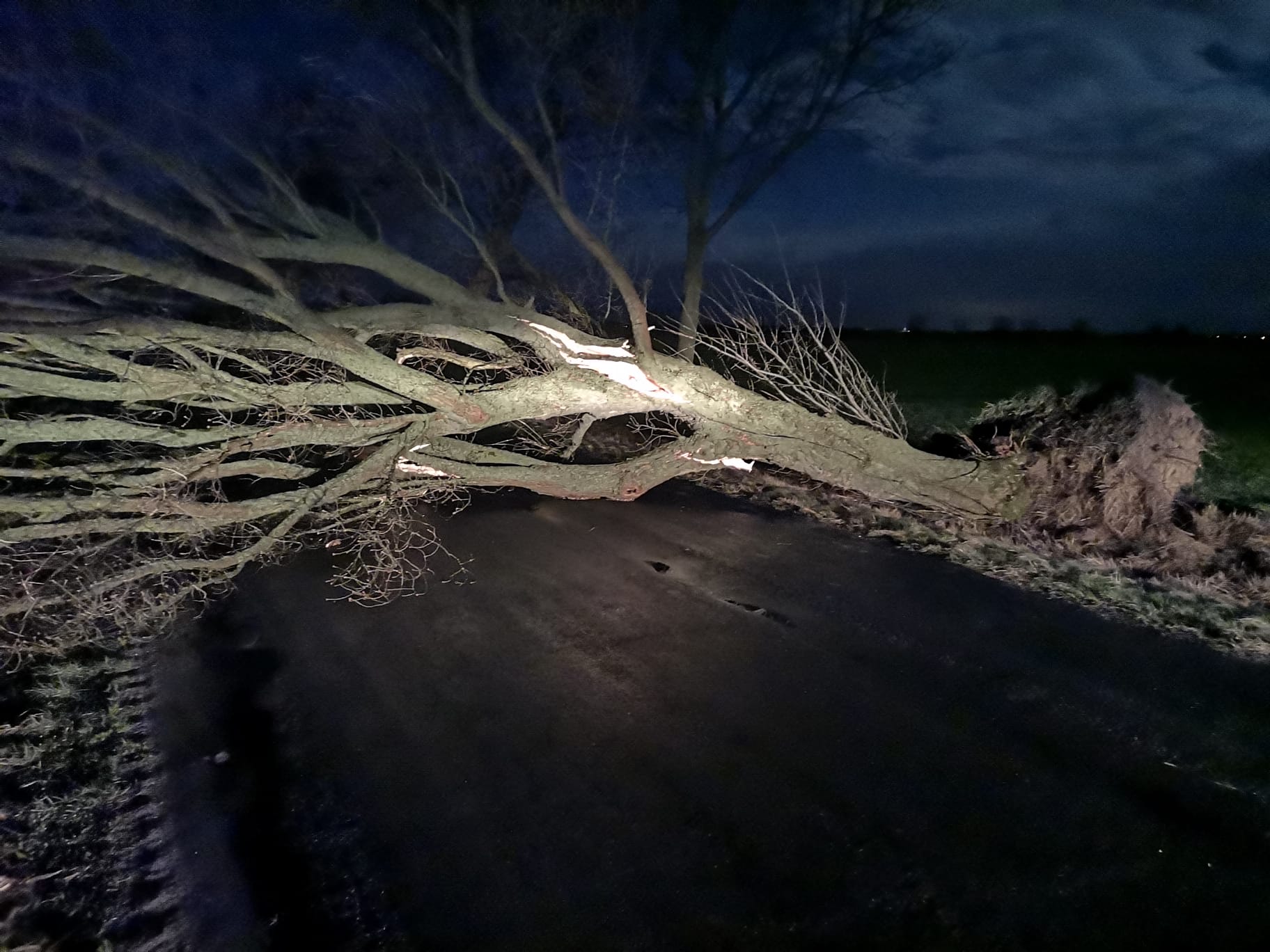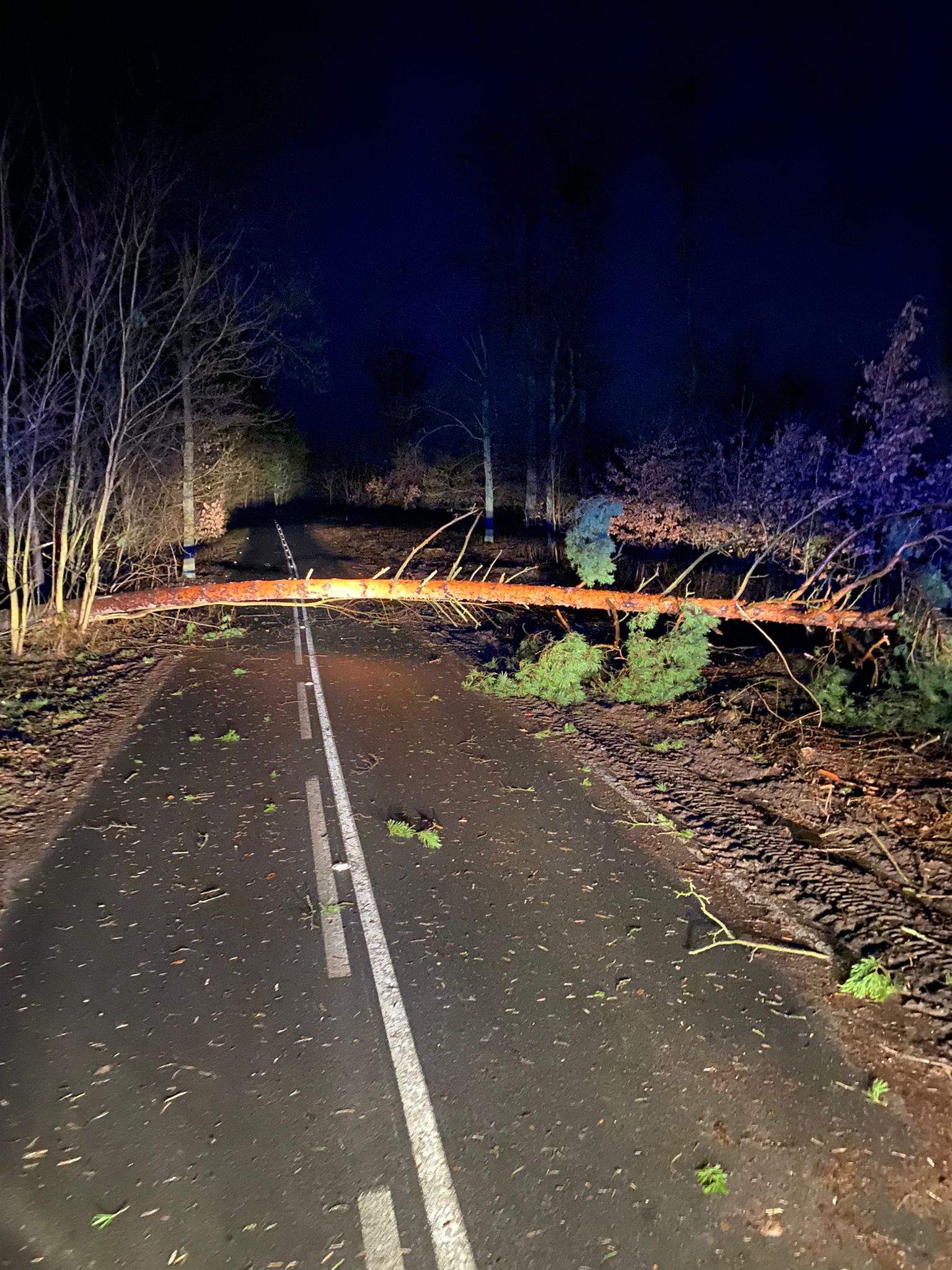 Meldunek po pierwszych silnych wiatrach. Tuż po godzinie 4 nad ranem dnia 17 lutego 2022 r. odnotowaliśmy pierwsze zgłoszenie związane z usunięciem zagrożenia spowodowanego bardzo silnymi podmuchami wiatru.