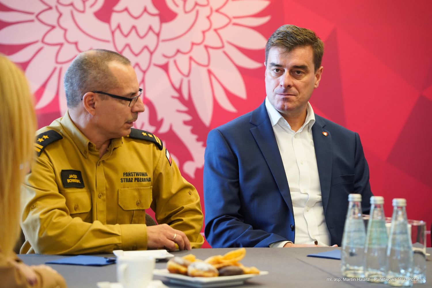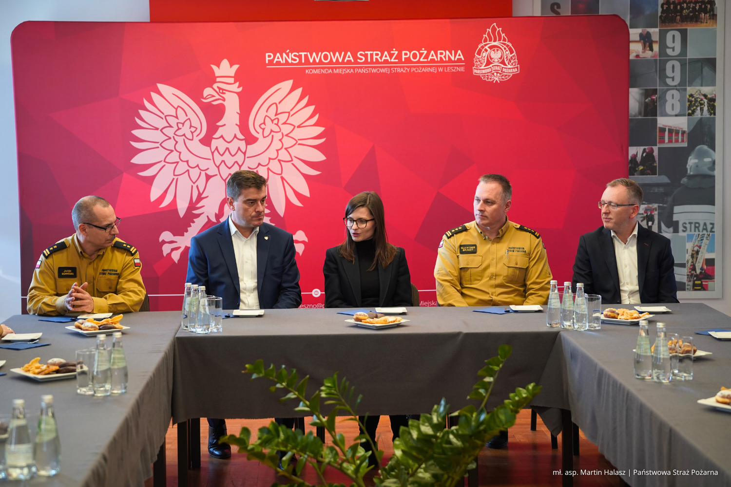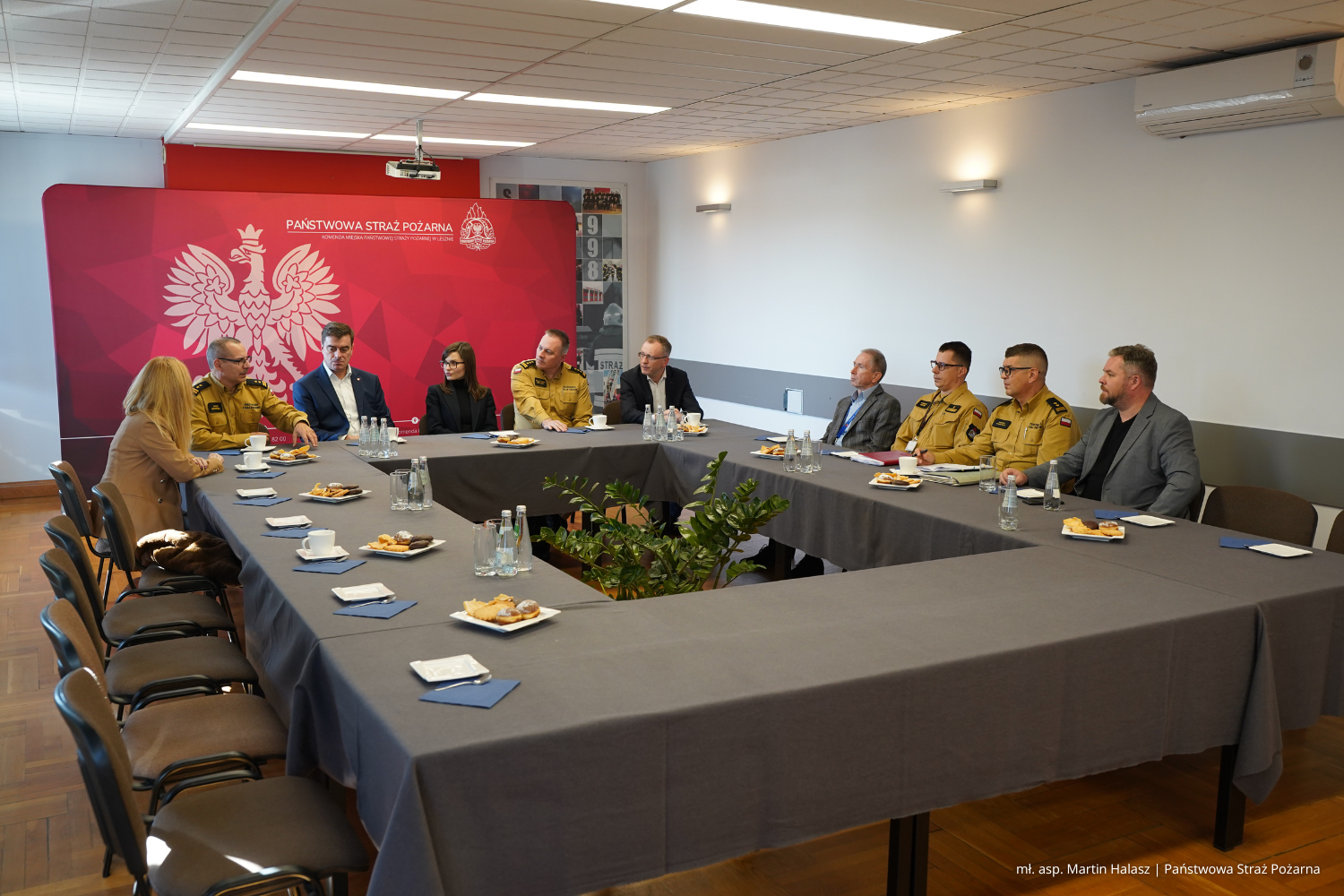 Wizyta miała na celu omówienie poziomu realizacji zadań wynikających z ustawy o Ochronie Ludności i Obronie Cywilnej, nałożonych między innymi na Państwową Straż Pożarną. W trakcie spotkania,