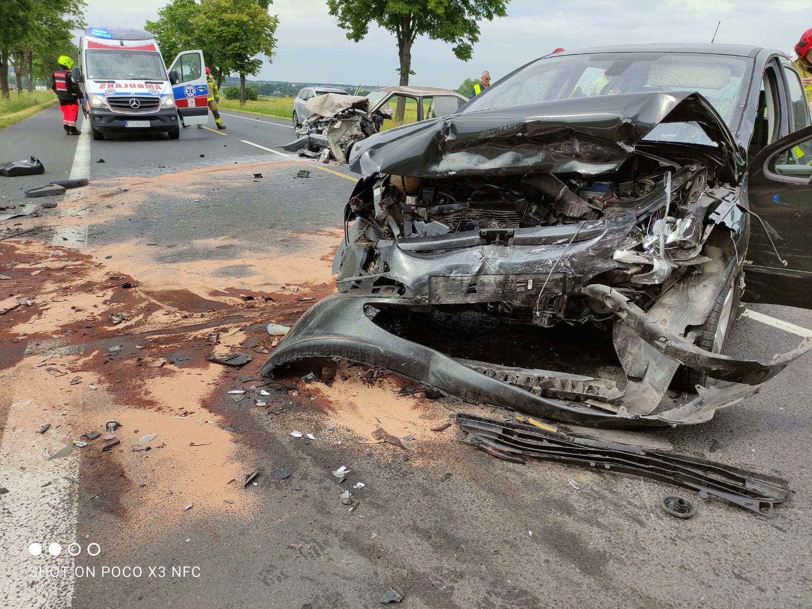W dniu 15.06.2021 r. dyżurny Stanowiska Kierowania Komendanta Miejskiego PSP w Lesznie przyjął zgłoszenie o wypadku drogowym z udziałem trzech samochodów osobowych na trasie Radomicko – Lipno.
