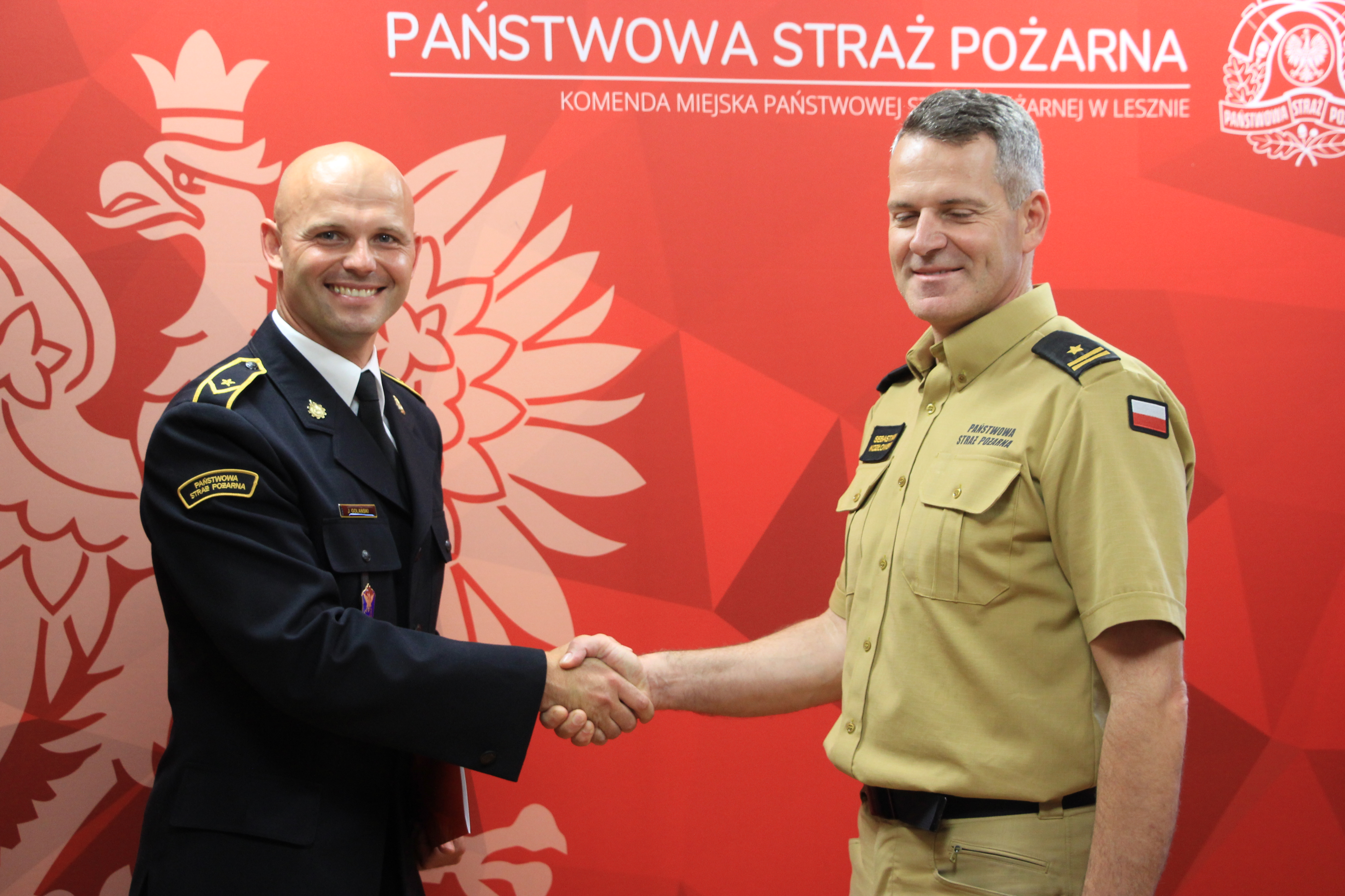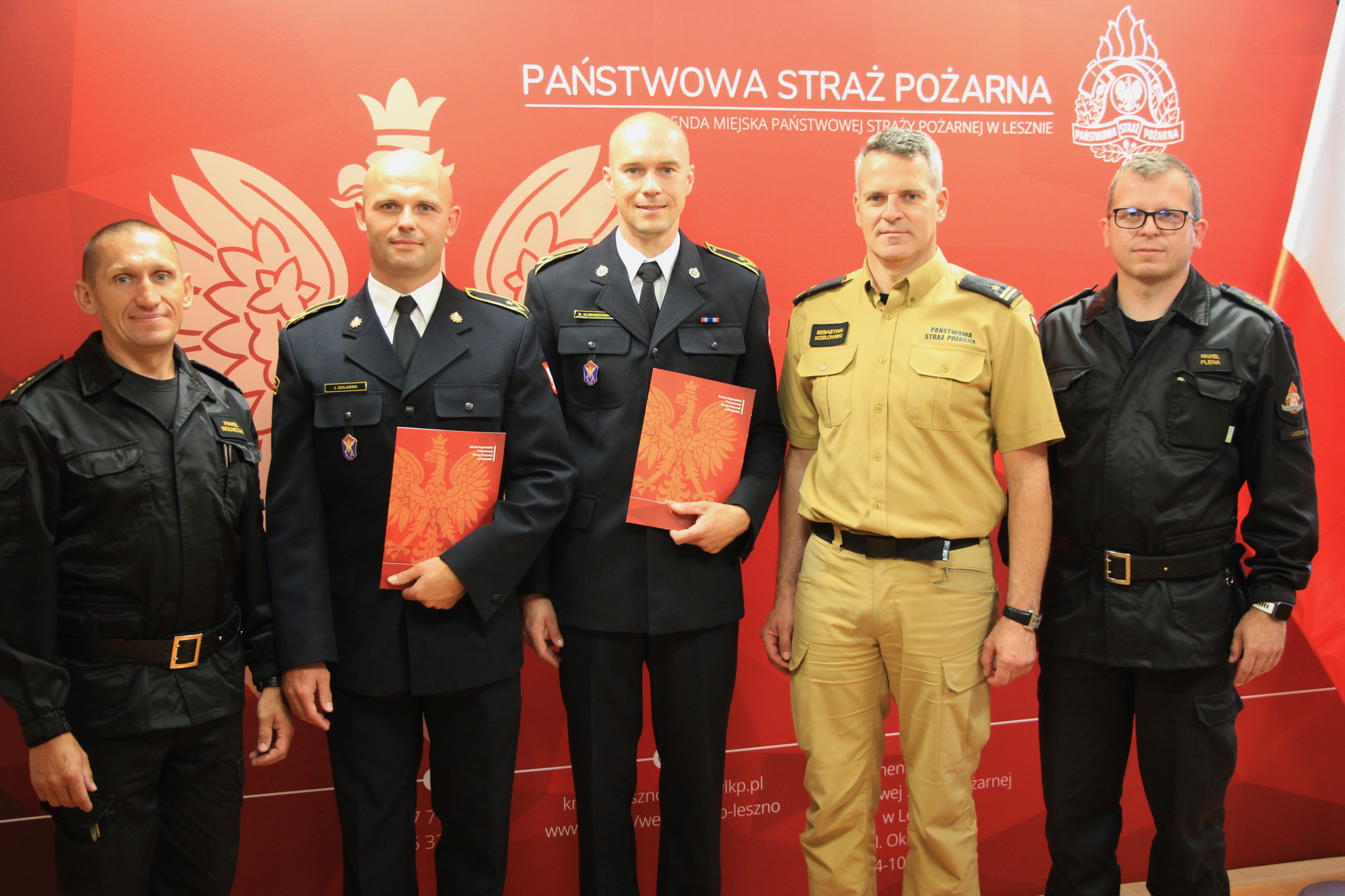 We wtorek 12 lipca 2022 roku Komendant Miejski Państwowej Straży Pożarnej w Lesznie mł. bryg. Sebastian Kozłowski wraz z pełniącym obowiązki Zastępcy Komendanta Miejskiego Państwowej Straży Pożarnej w Lesznie st. kpt. Pawłem Plewą spotkali się z absolwentami Szkoły Aspirantów Państwowej Straży Pożarnej w Poznaniu, aby pogratulować awansowanym funkcjonariuszom.