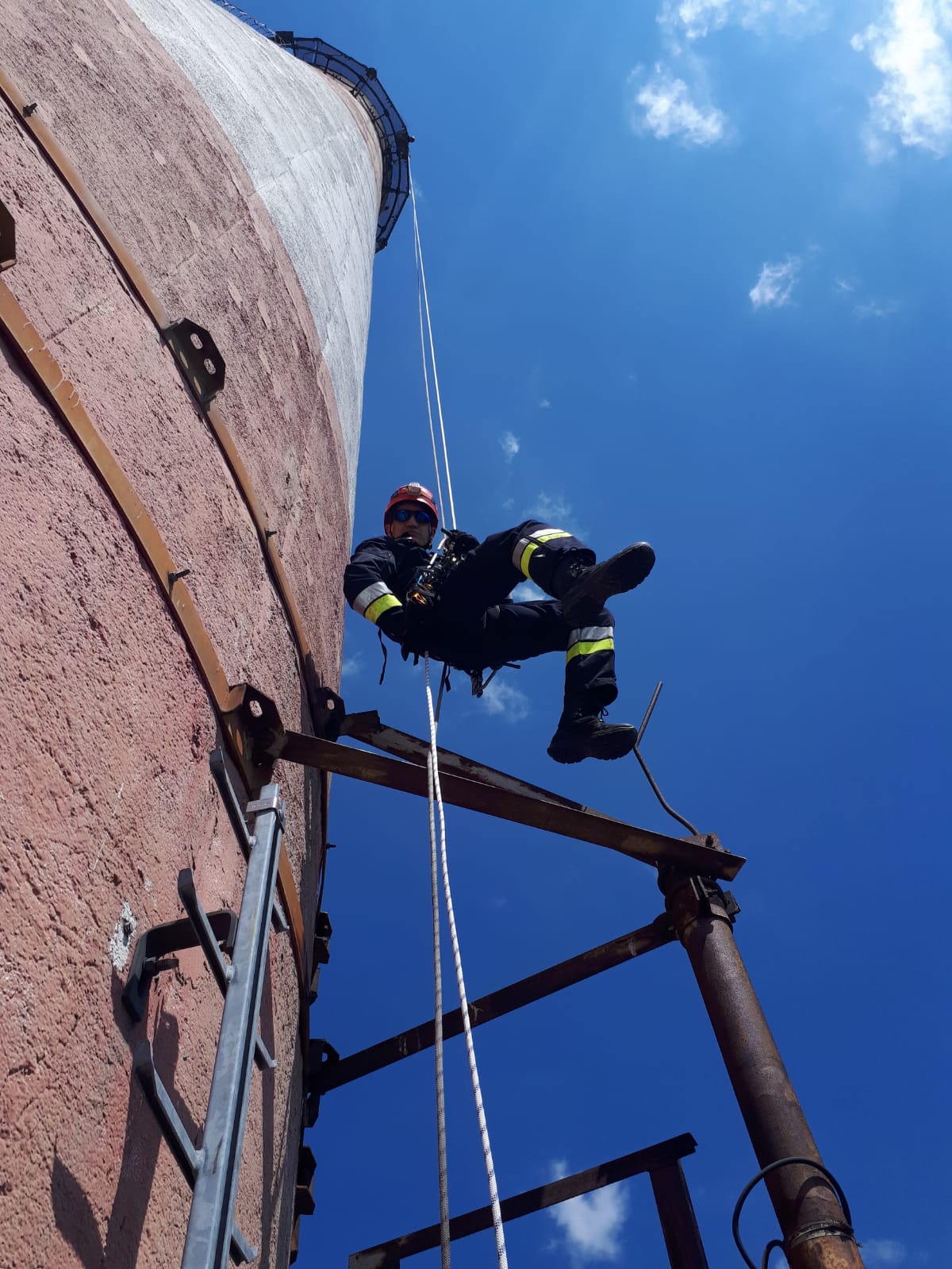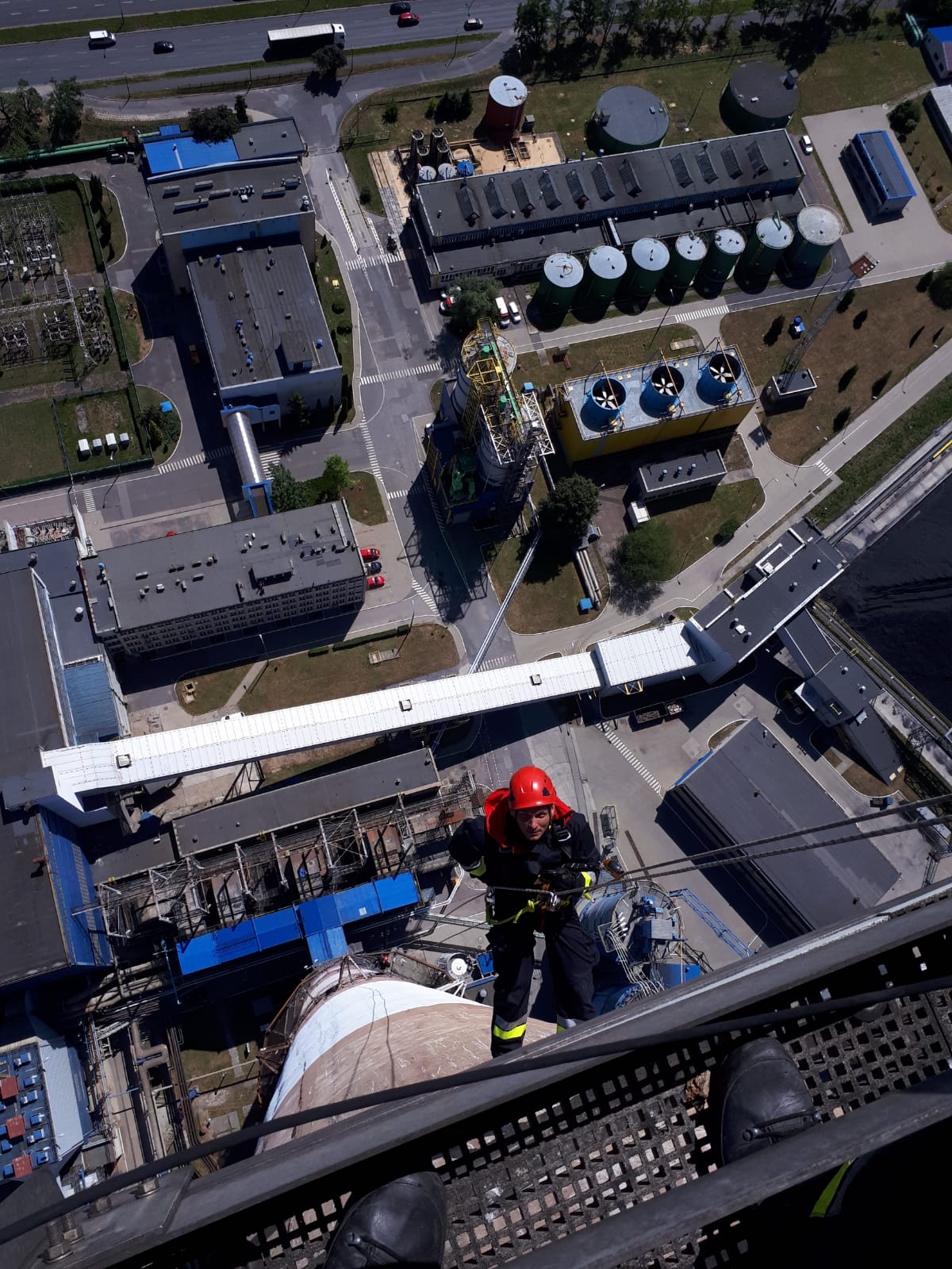 W dniach 13-15 lipca br. ratownicy Specjalistycznej Grupy Ratownictwa Wysokościowego z JRG 10 w Łodzi wzięli udział w ćwiczeniach z zakresu ewakuacji osoby poszkodowanej z komina (galerii na wysokości 160m) na terenie Veolia Energia Łódź S.A. Elektrociepłownia EC 3 przy ul. Pojezierskiej 70. Celem ćwiczeń była ocena możliwości ewakuacji osób poszkodowanych z kominów, zapoznanie się ze specyfikacją zakładu oraz zagrożeniami mogącym wystąpić na tego typów obiektach. Ponadto ratownicy doskonalili umiejętności z zakresu działań ratowniczych podczas ewakuacji osoby poszkodowanej z wysokości około 160 m, z wykorzystaniem technik linowych (lina kierunkowa), w tym noszy wannowych. Ćwiczenia zrealizowane zostały na trzech zmianach służbowych. Podczas ćwiczeń ratownicy oprócz doskonalenia umiejętności ratowniczych, zapoznali się z obiektem, doskonalili umiejętności bezpiecznego transportu sprzętu ratowniczego na znaczne wysokości, techniki zjazdu z wysokości 160 m w otwartej przestrzeni. Nadzór nad prawidłowym przebiegiem ćwiczeń prowadził asp. Piotr Patora - instruktor ratownictwa wysokościowego KSRG.