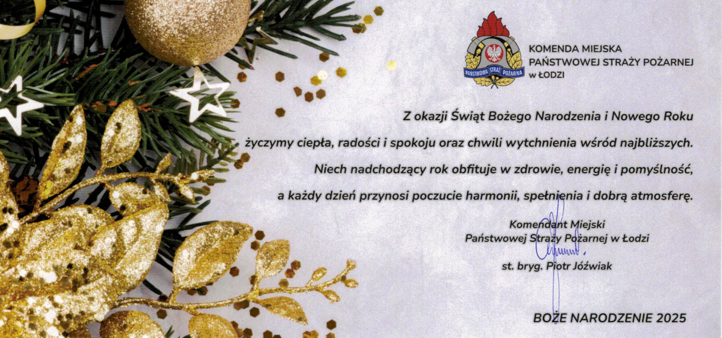 Świąteczne życzenia Komendanta Miejskiego PSP w Łodzi 22.12.2025 Zdjęcia (1) Pokaż zdjęcie 1 z galerii.