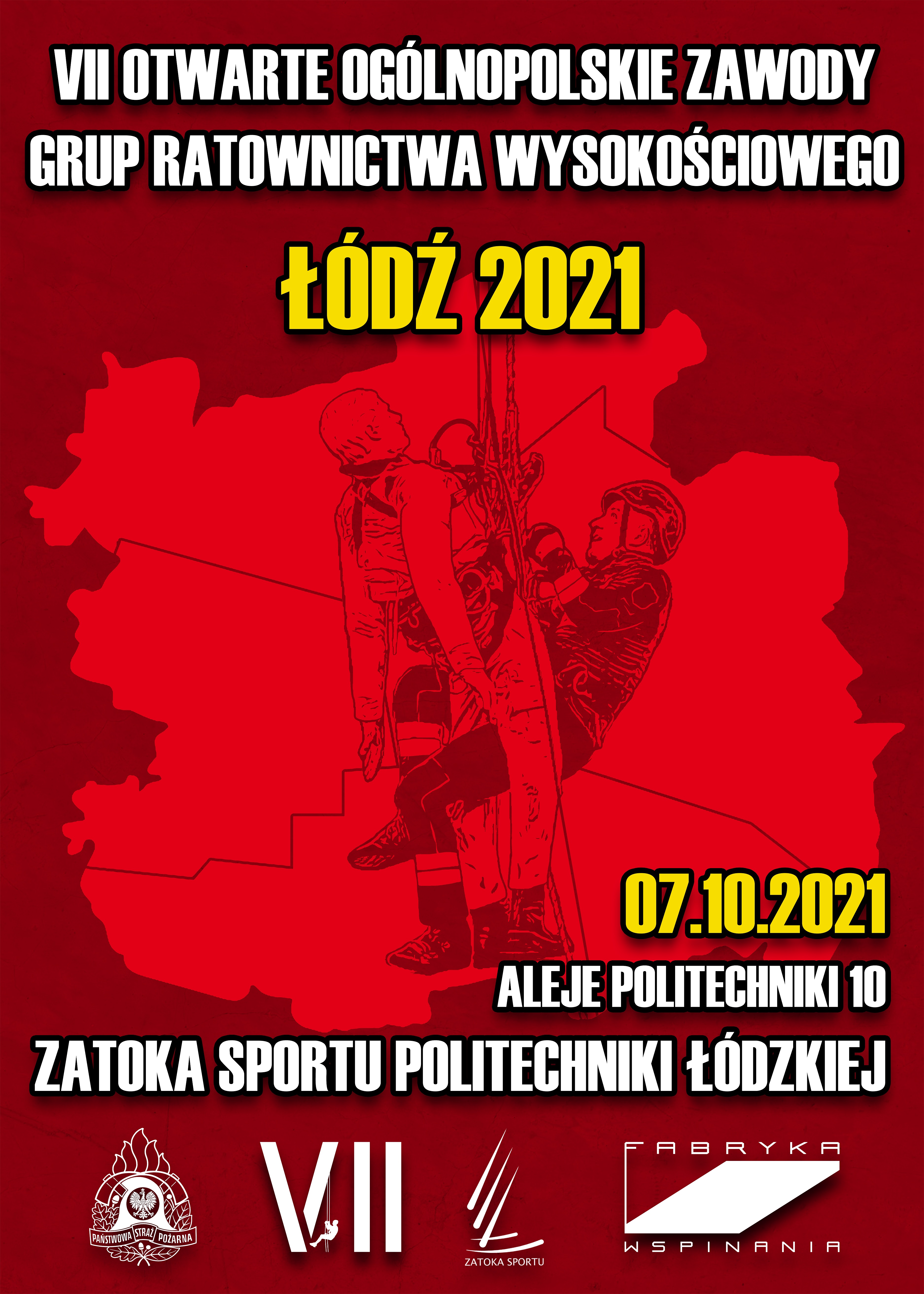 Komenda Miejska PSP w Łodzi serdecznie zaprasza na VII Otwarte Zawody Grup Ratownictwa Wysokościowego, które odbędą się 7 października 2021 r. w Akademickim Centrum Sportowo-Dydaktycznym Politechniki Łódzkiej "Zatoka Sportu" przy Al. Politechniki 10 w Łodzi.