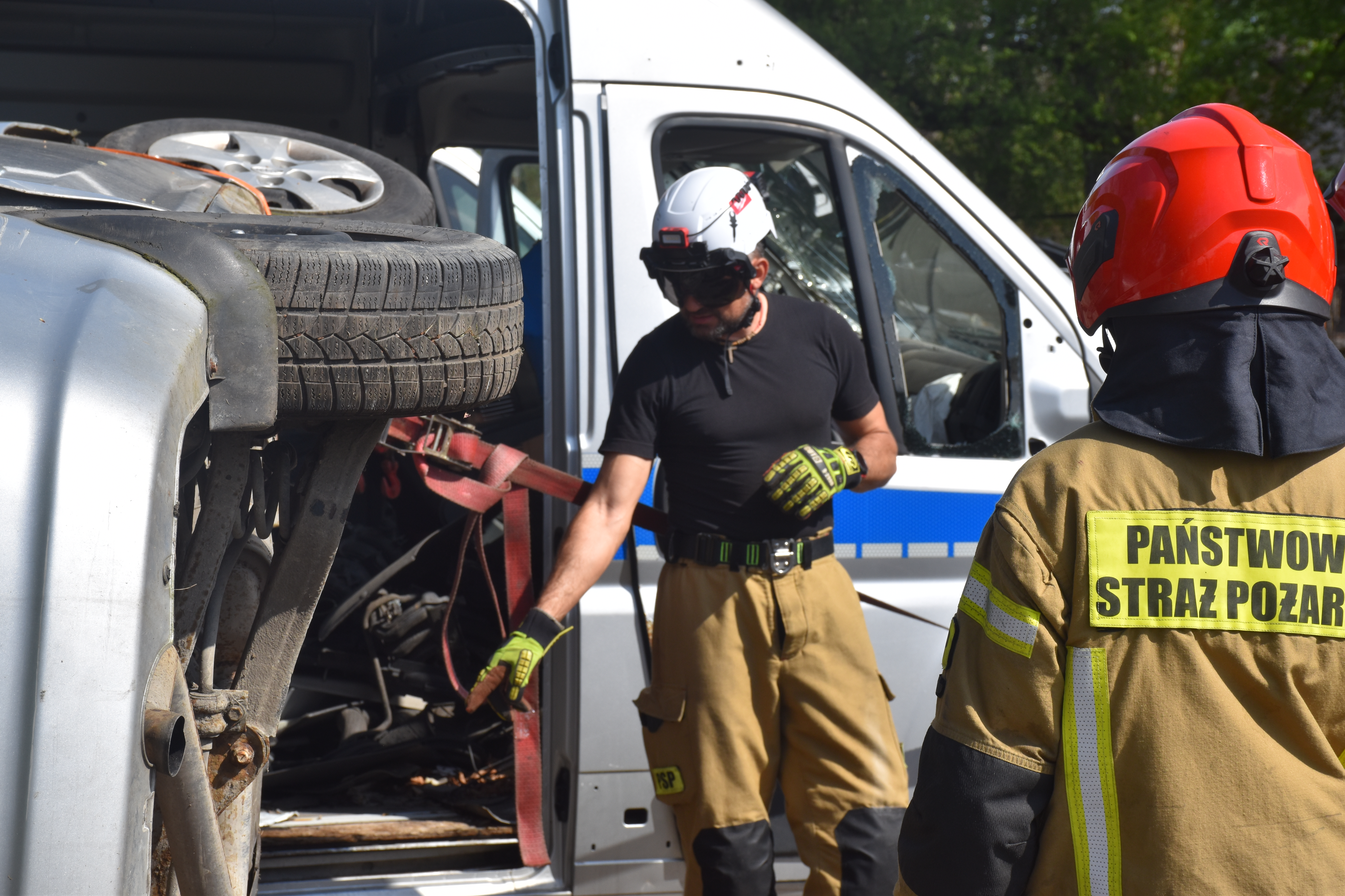 Część praktyczna realizowana była z wykorzystaniem wraków samochodów osobowych. Uczestnicy warsztatów doskonalili umiejętności z zakresu stabilizacji pojazdów oraz stosowania metod i technik uwalniania osób poszkodowanych.