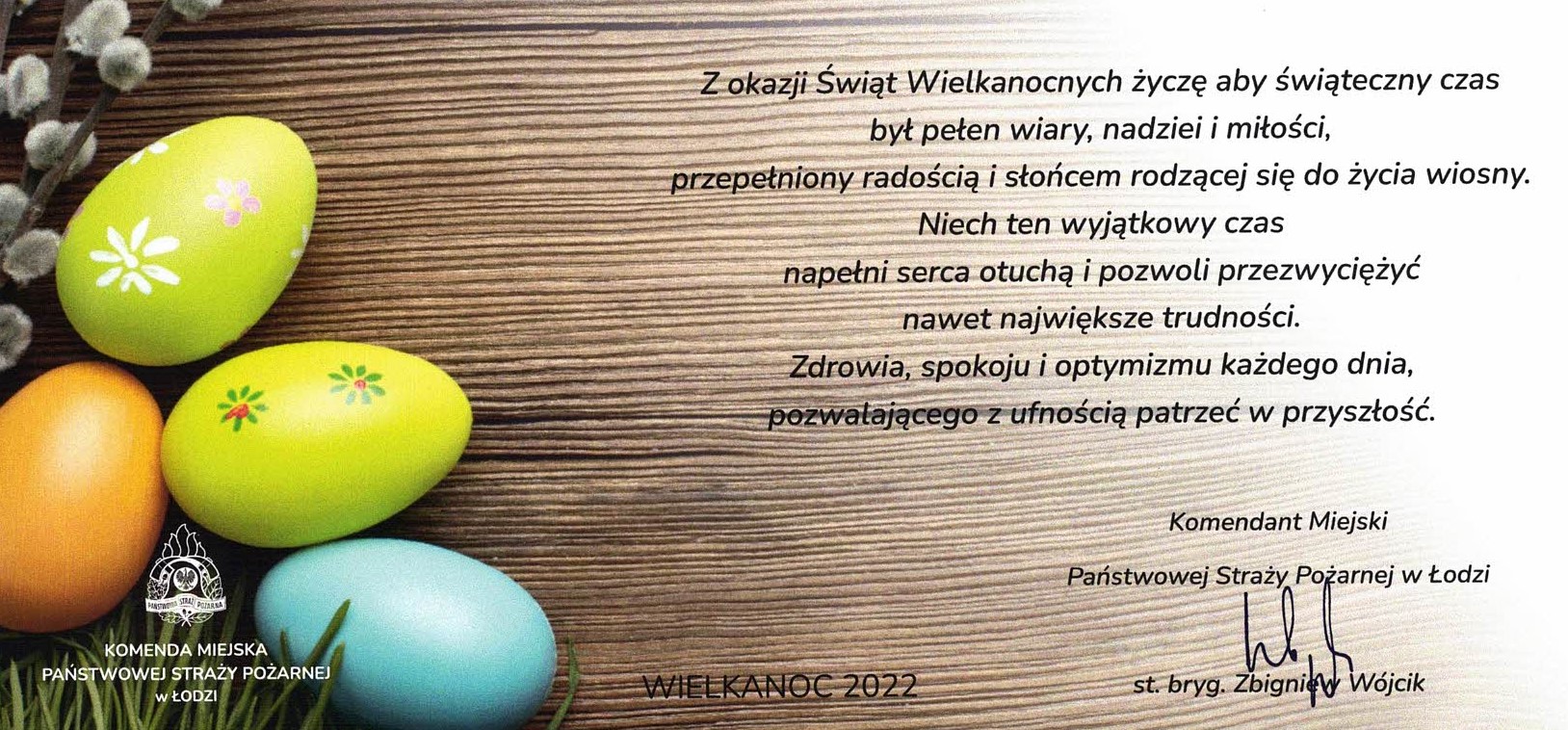 Życzenia Wielkanocne Komendanta Miejskiego PSP w Łodzi 15.04.2022 Zdjęcia (1) Pokaż zdjęcie 1 z galerii.
