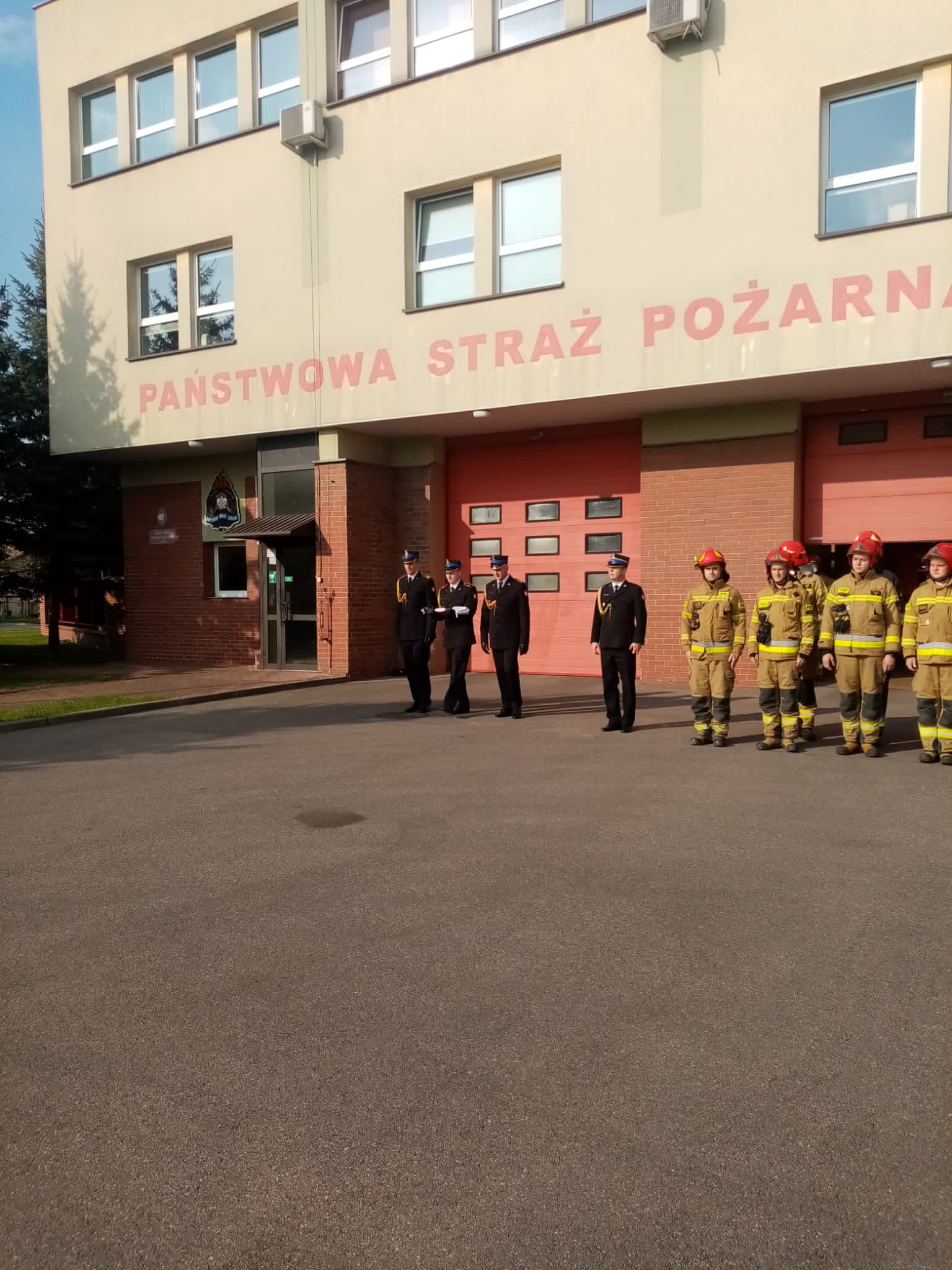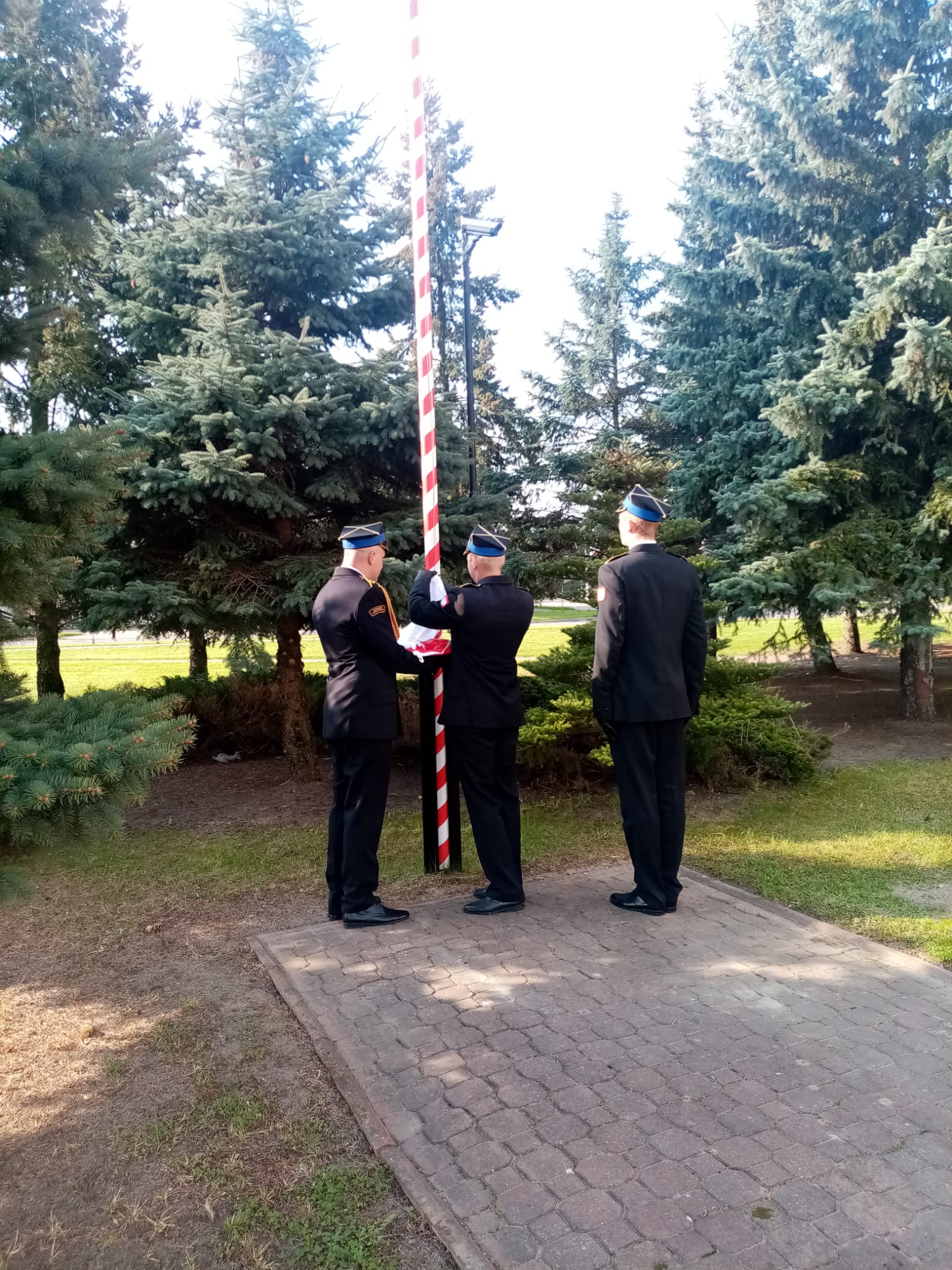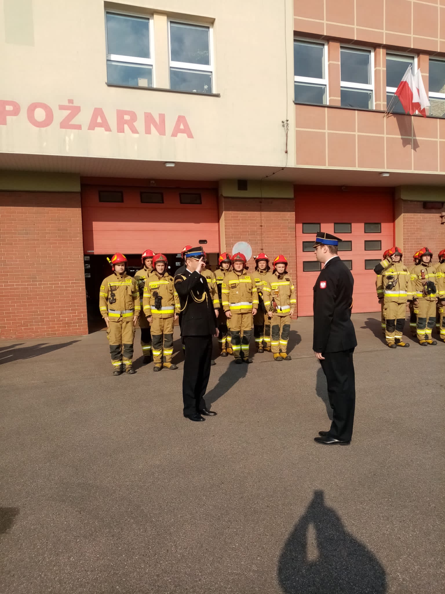 W dniu 2 maja, który jest Dniem Flagi Rzeczypospolitej Polskiej, przed Komendą Miejską Państwowej Straży Pożarnej w Łomży o godzinie 8.00 w trakcie zmiany służby dokonano uroczystego podniesienia flagi państwowej na maszt przez poczet flagowy przy asyście dwóch zmian służbowych
