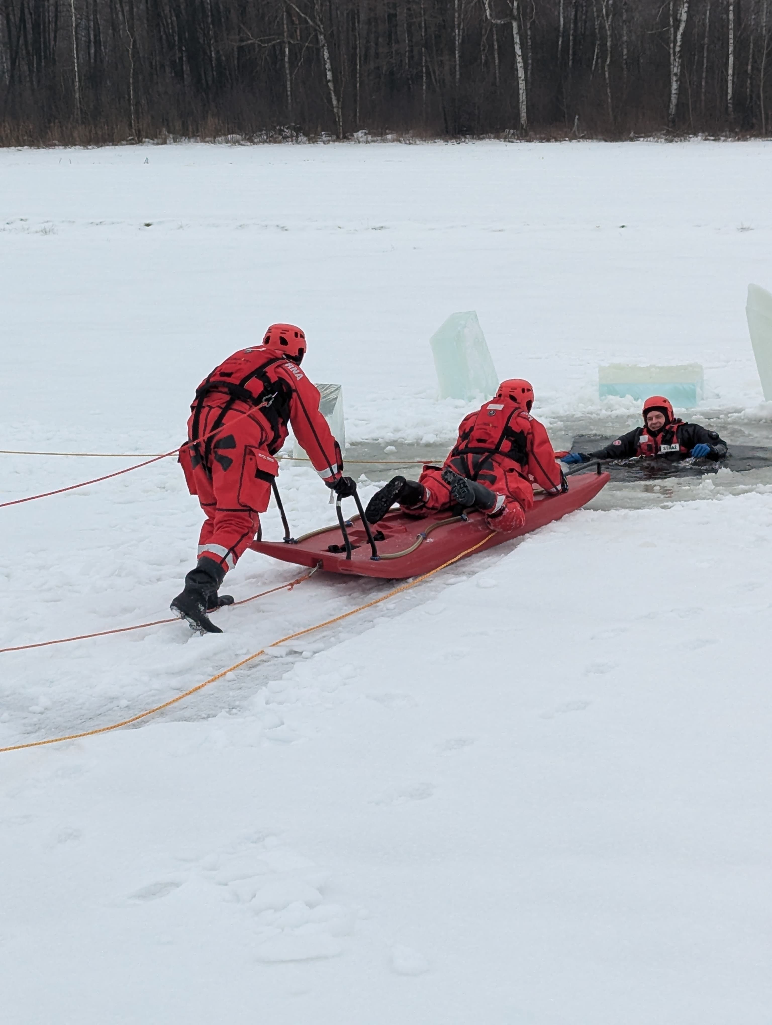 Strażacy przypominają, że lód na zbiornikach wodnych nigdy nie daje pełnej gwarancji bezpieczeństwa. Jego grubość może być nierówna, a niewidoczne przeręble stanowią poważne zagrożenie dla życia. Apelujemy o niewchodzenie na zamarznięte akweny oraz pozostawienie działań ratowniczych wyłącznie wyszkolonym służbom.