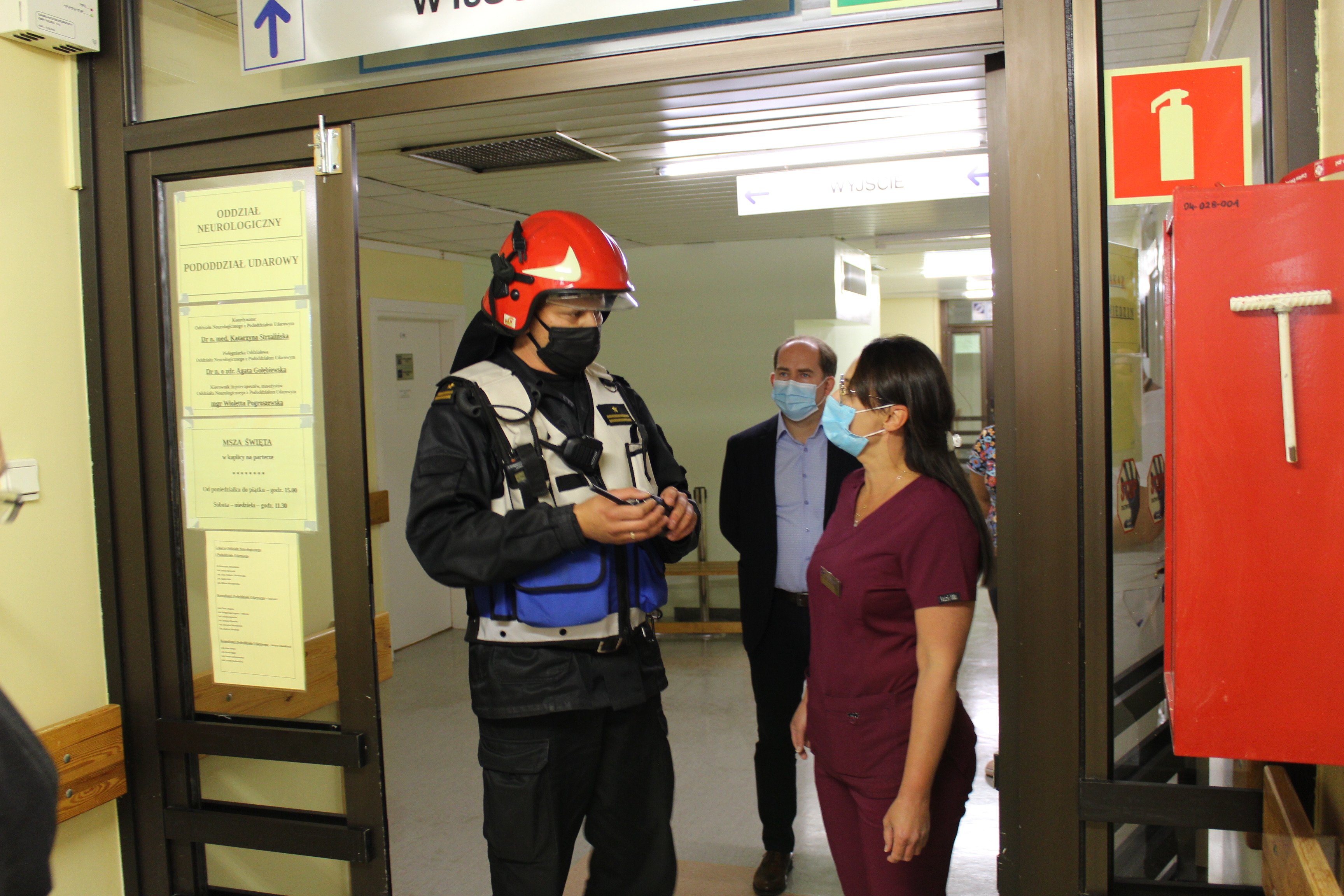 Epizod ćwiczeń zakładał praktyczne sprawdzenie organizacji i warunków ewakuacji Oddziału Neurologicznego z Pododdziałem Udarowym po wystąpieniu pożaru