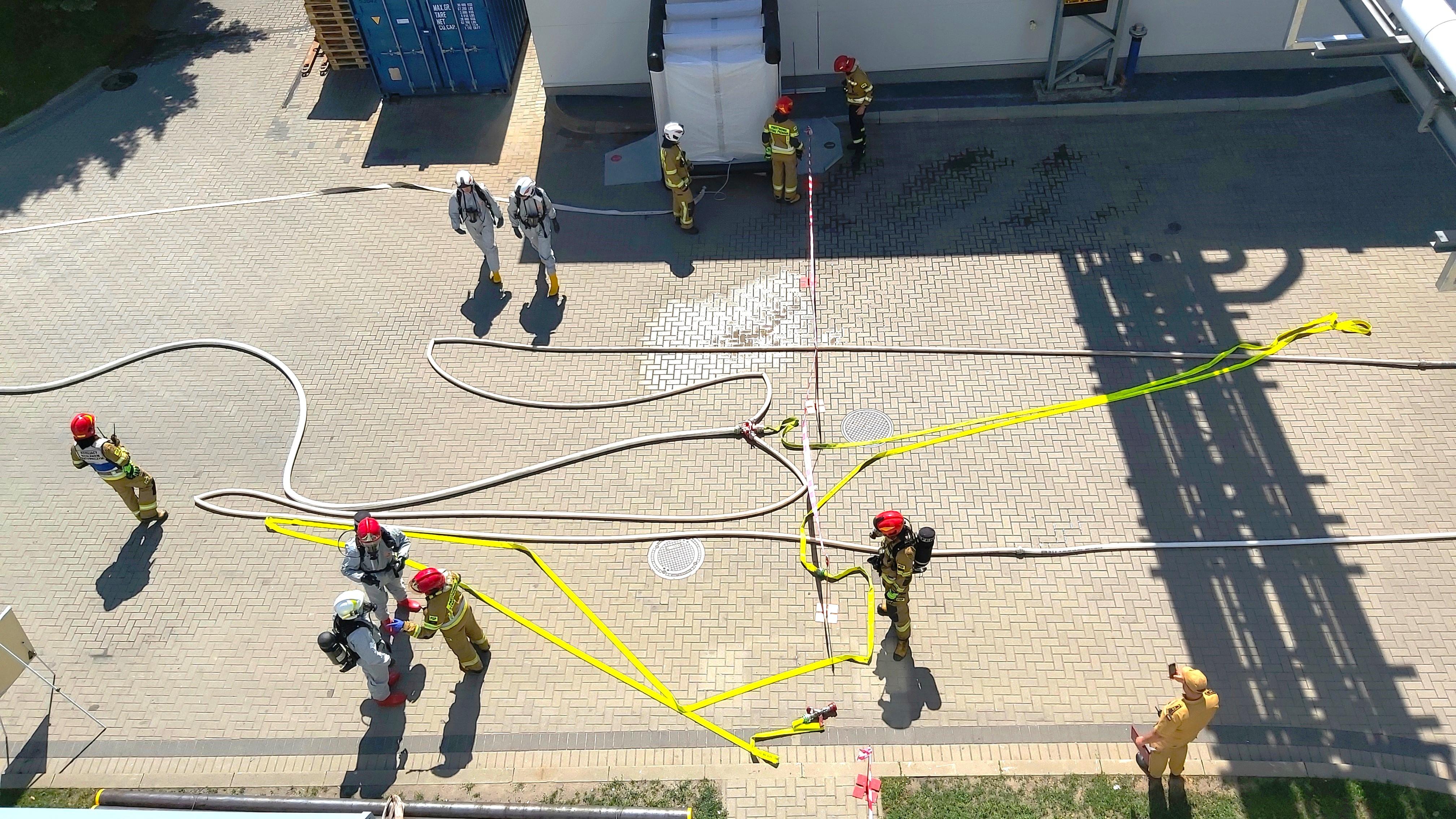 18 czerwca 2024 r. na terenie zakładu OSM Piątnica odbyły się wspólne ćwiczenia zastępów JRG Łomża oraz jednostek OSP z gminy Piątnica.