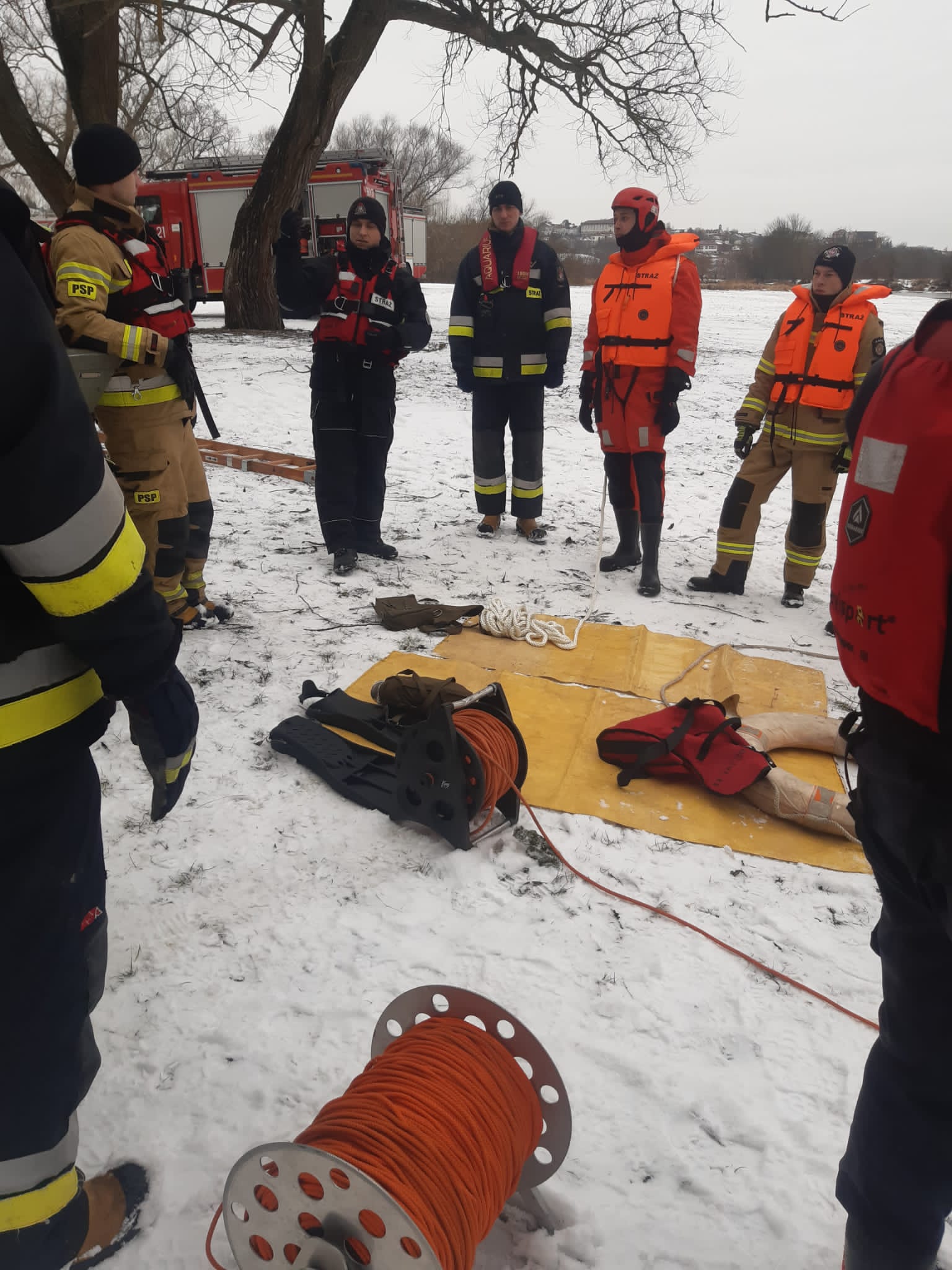 Ćwiczenia strażaków PSP z Łomży i druhów z OSP KSRG z powiatu łomżyńskiego z ratownictwa na lodzie