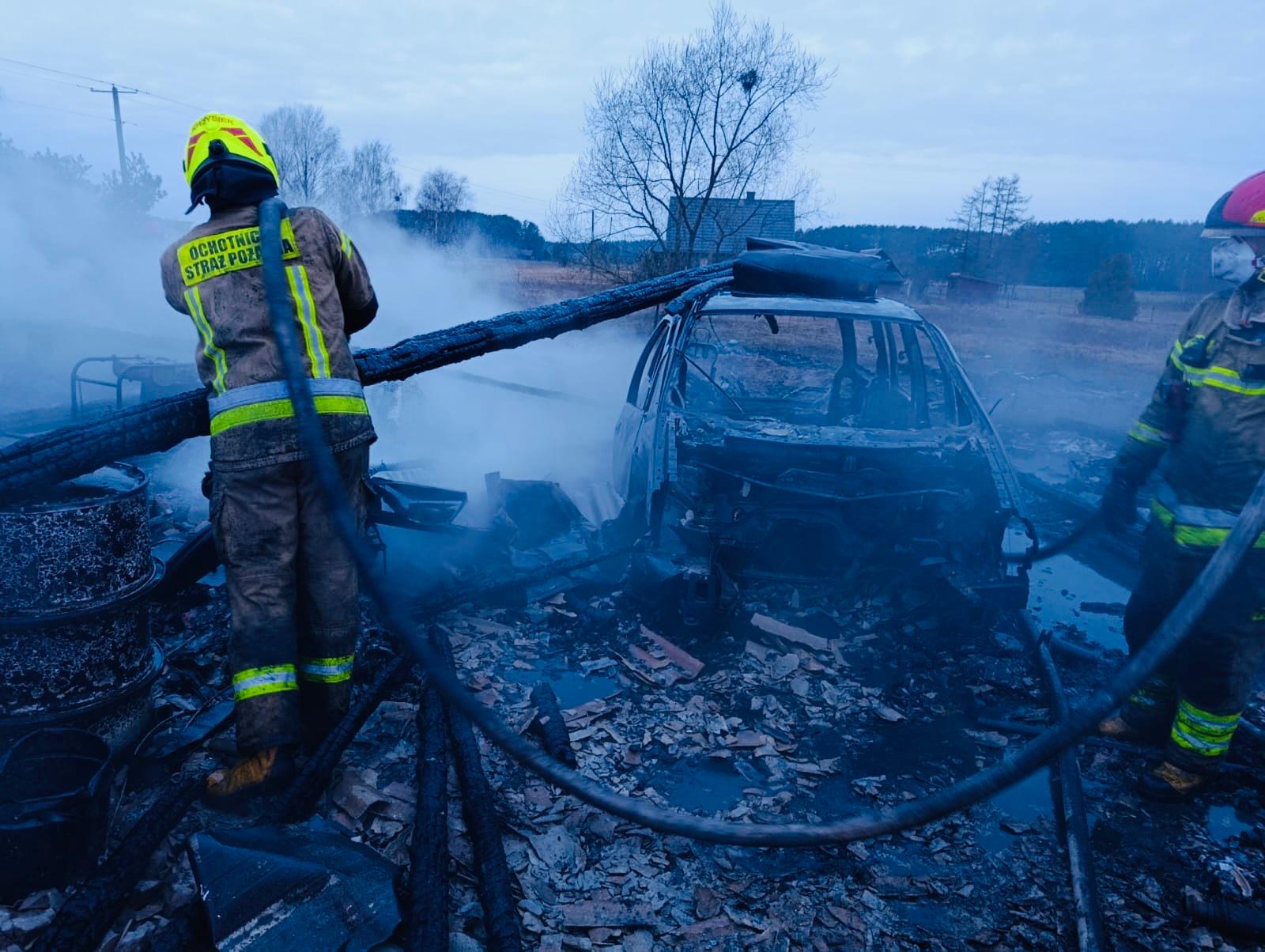 Działania strażaków polegały na zabezpieczeniu miejsca zdarzenia i podaniu łącznie pięciu prądów gaśniczych wody na palące się budynki. Ze względu na silne zadymienie ratownicy prowadzili działania w aparatach ochrony układu oddechowego. W trakcie działań strażacy ewakuowali trzy zwierzęta z zagrożonej pożarem strefy. O zdarzeniu poinformowano Oficera Operacyjnego Powiatu, który udał się na miejsce działań.