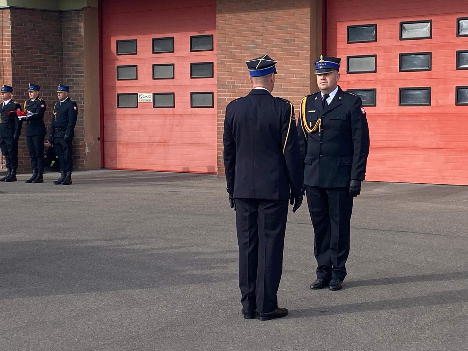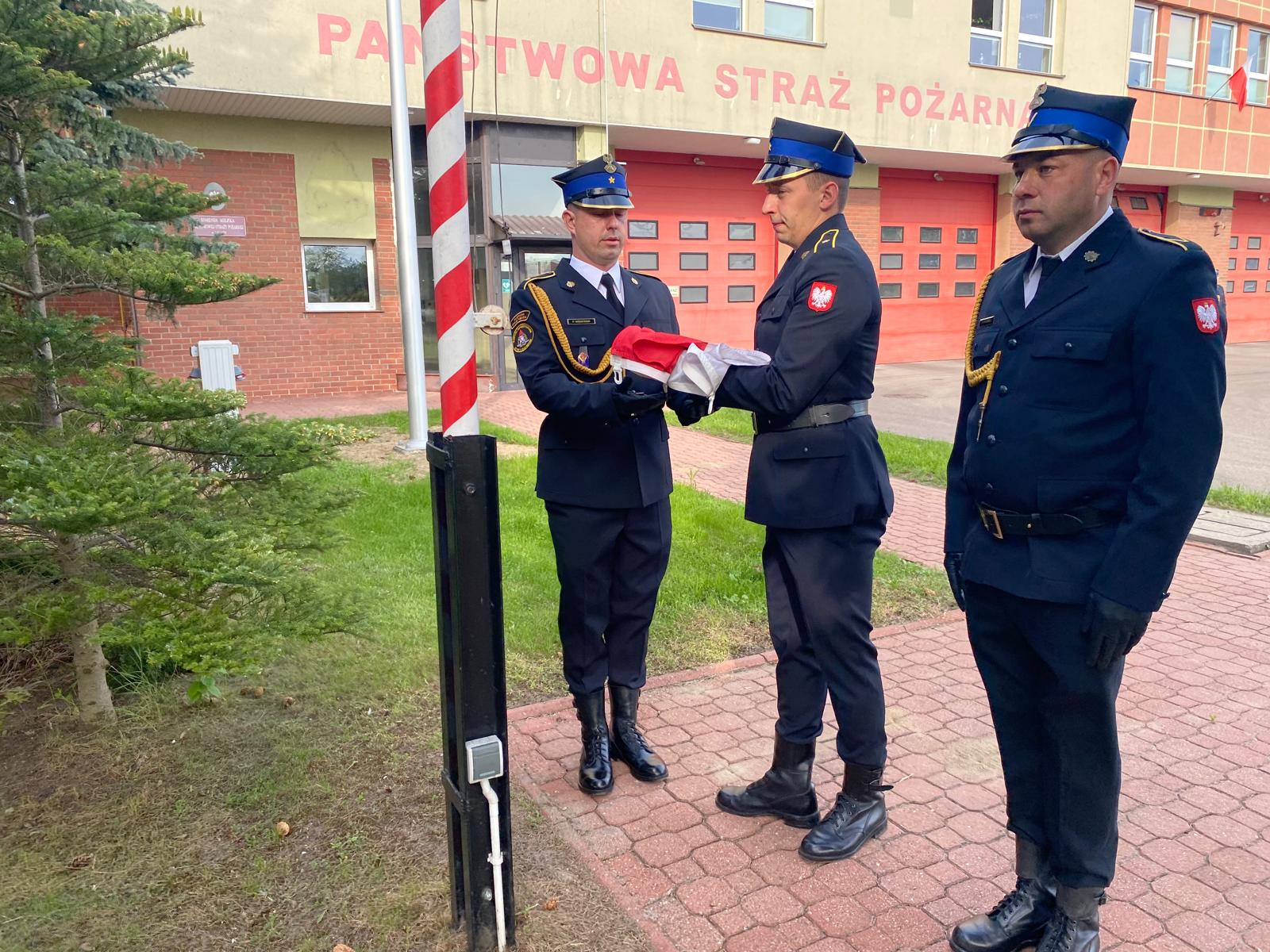Zbiórka rozpoczęła się złożeniem meldunku st. kpt. Pawłowi Leszczyńskiemu Zastępcy Komendanta Miejskiego Państwowej Straży Pożarnej w Łomży przez st. kpt. Kamila Cieślikiewicza Zastępcę Dowódcy Jednostki Ratowniczo-Gaśniczej w Łomży. Następnie podczas hymnu państwowego uroczyście dokonano podniesienia flagi państwowej na maszt.