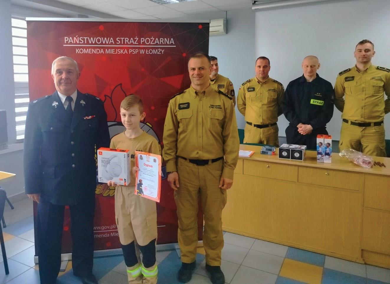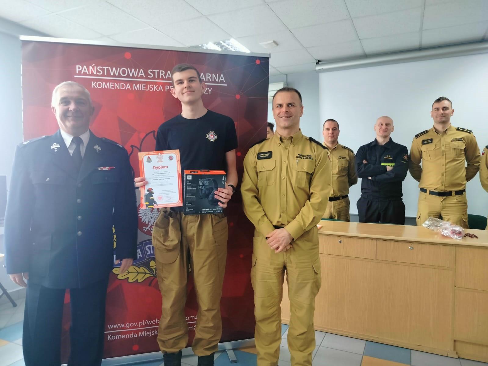Na zakończenie zmagań wszyscy uczestniczy otrzymali dyplomy oraz upominki. Natomiast laureaci dodatkowo odebrali nagrody rzeczowe ufundowane przez Komendę Wojewódzką PSP w Białymstoku oraz Pana Adama Mariusza Niebrzydowskiego Burmistrza Jedwabnego.