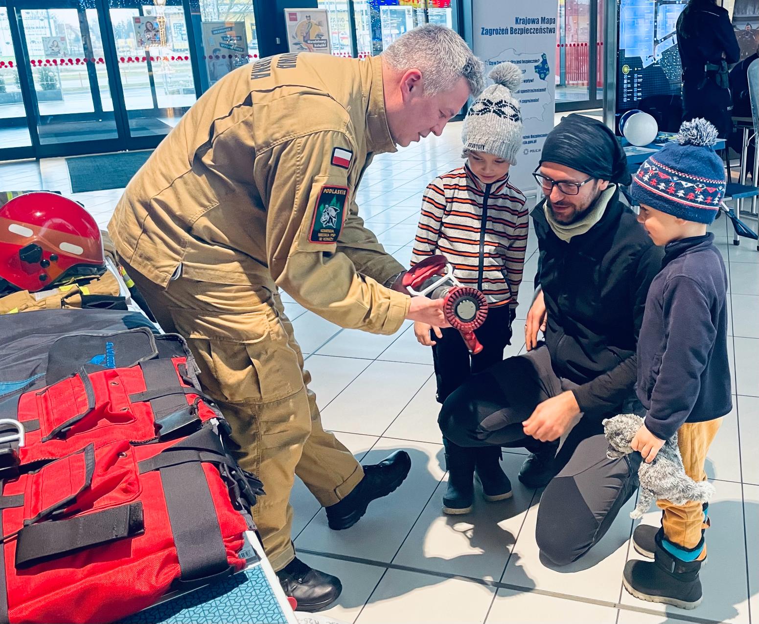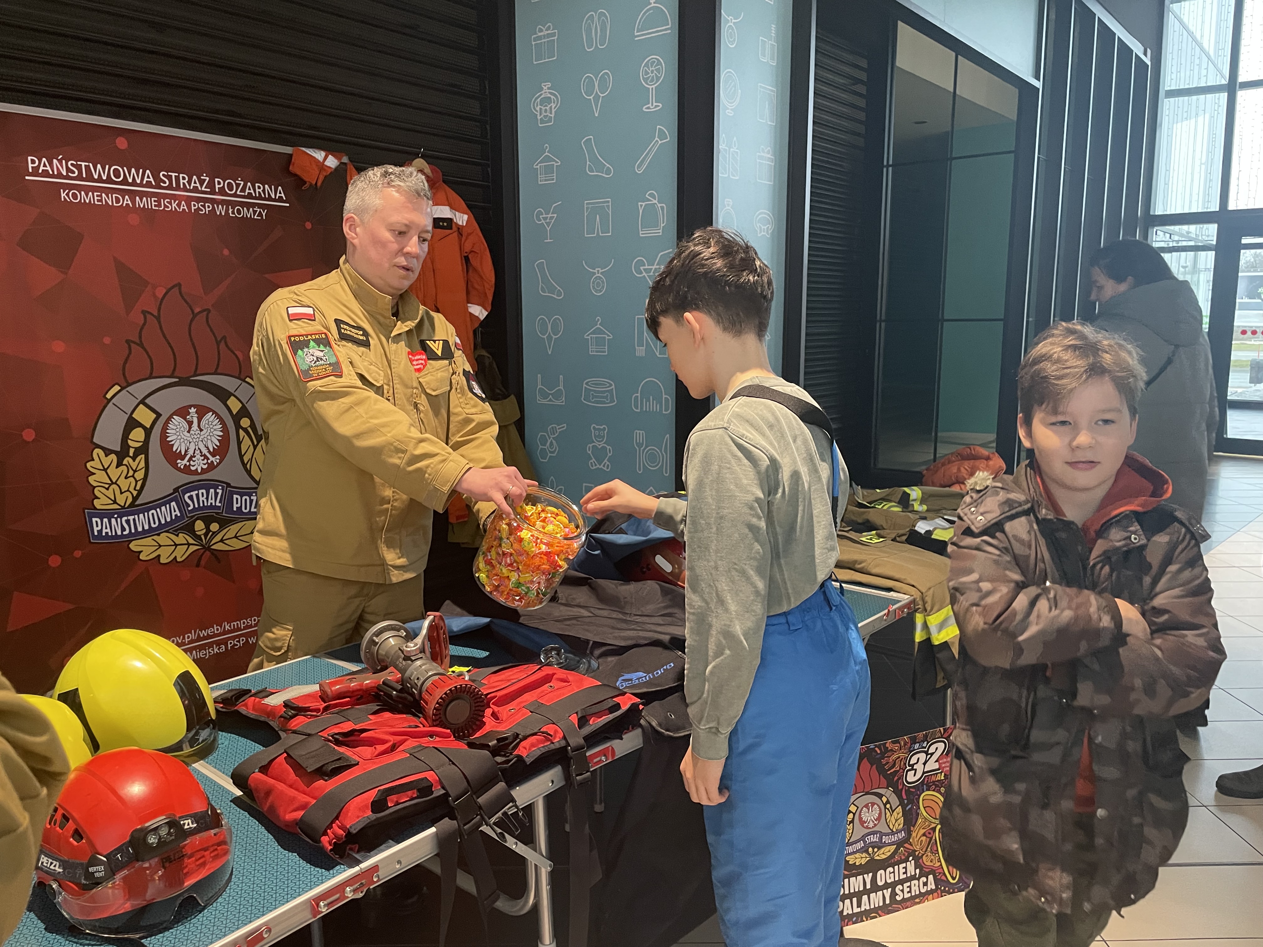 W Galerii Veneda prezentowaliśmy sprzęt i opowiadaliśmy o naszej służbie. Dodatkowo funkcjonariusze będący w specjalistycznych grupach tj. Specjalistyczna Grupa Wodno-Nurkowa „Łomża” i Specjalistyczna Grupa Poszukiwawczo-Ratownicza przybliżyli charakterystykę działania grup. Najmłodsi mieli możliwość wczuć się w rolę strażaka poprzez przymierzenie ubrania specjalnego oraz hełmu.
