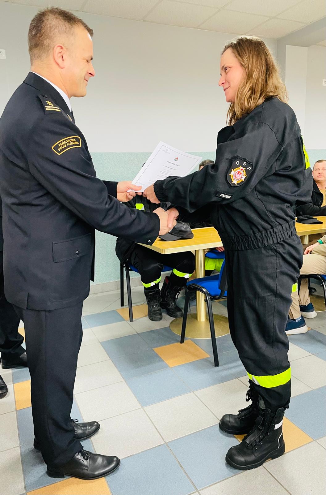 Egzamin końcowy pozytywnie zaliczyło 40 absolwentów. Zaświadczenia o ukończeniu szkolenia wręczył komendant miejski PSP w Łomży, bryg. Arkadiusz Obrycki, który pogratulował strażakom i życzył im bezpiecznej służby.