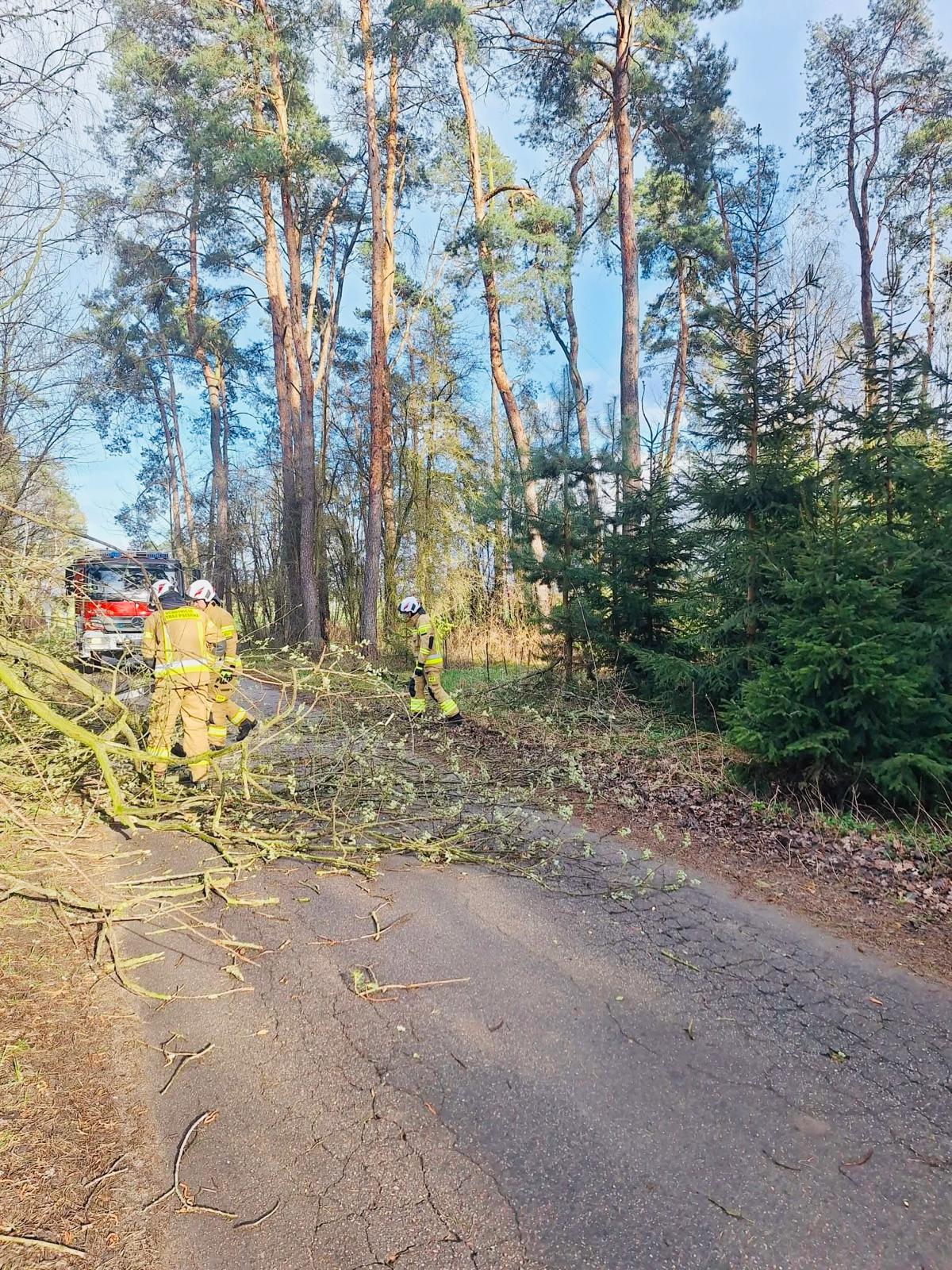 6 kwietnia 2026 r. strażacy z Komendy Miejskiej PSP w Łomży odnotowali wzmożoną liczbę zgłoszeń związanych z przechodzącymi przez region silnymi podmuchami wiatru.