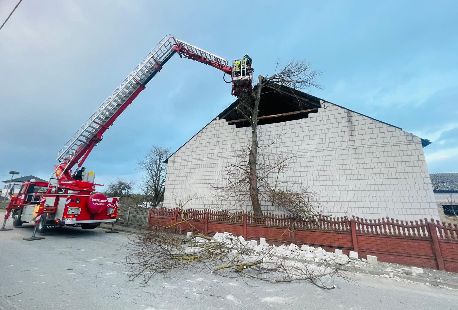 Łącznie interweniowano 14 razy, z czego 13 zdarzeń dotyczyło usuwania skutków niekorzystnych warunków atmosferycznych. Najwięcej pracy wymagały działania związane z powalonymi drzewami i konarami blokującymi drogi – odnotowano 10 takich interwencji. W trzech przypadkach strażacy zabezpieczali i naprawiali uszkodzone połacie dachowe na budynkach.