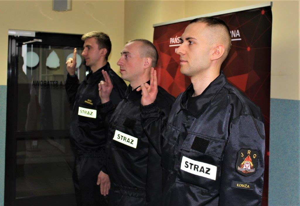 W dniu dzisiejszym trzech nowo zatrudnionych strażaków złożyło uroczyste ślubowanie rozpoczynając służbę przygotowawczą w Państwowej Straży Pożarnej. Ślubowanie przyjął Komendant Miejski Państwowej Straży Pożarnej w Łomży bryg. Adam Kalinowski w obecności dowództwa Jednostki Ratowniczo-Gaśniczej.