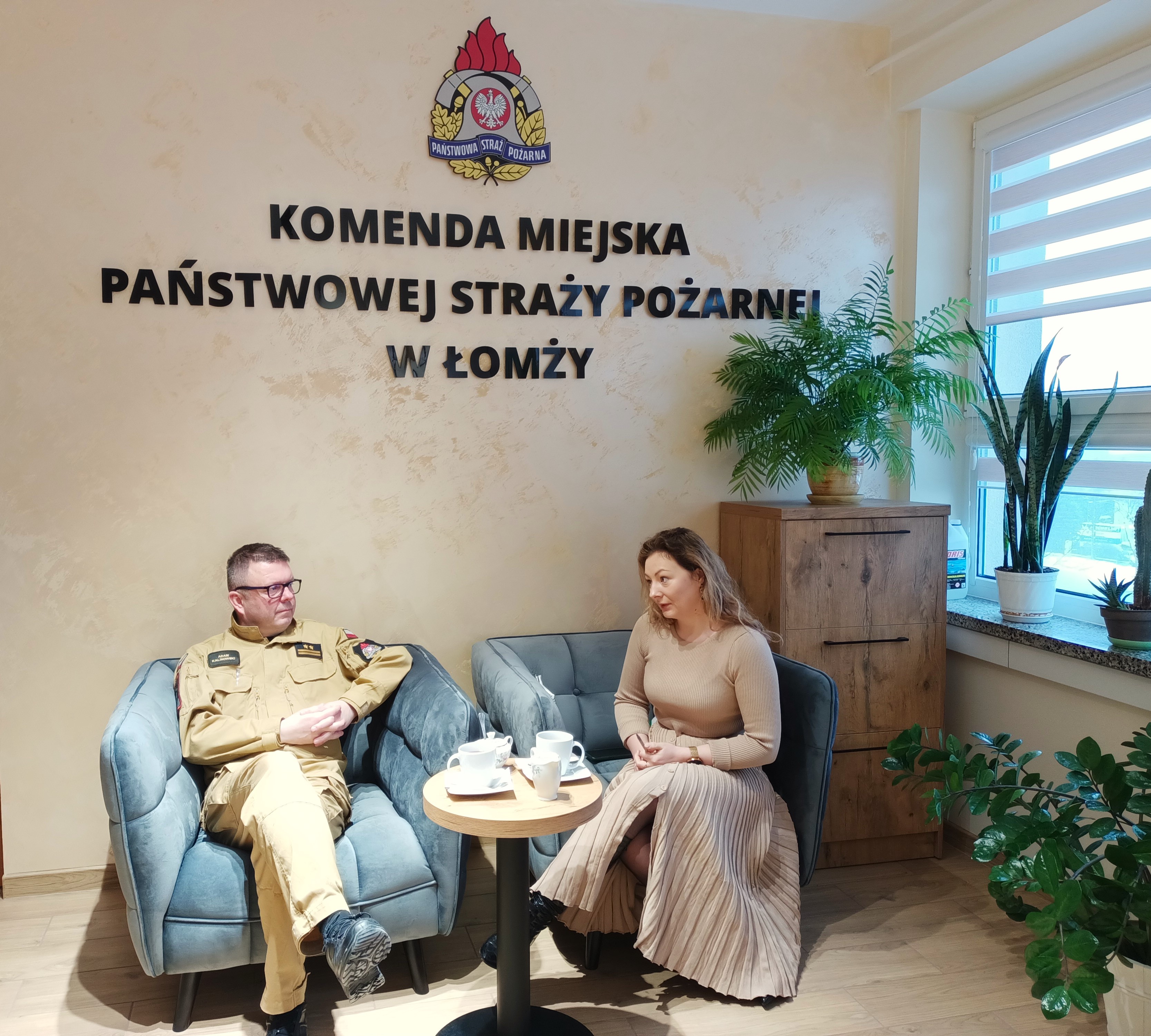15 stycznia 2024 r. odbyło się spotkanie Komendanta Miejskiego PSP w Łomży bryg. Adama Kalinowskiego z szefem sztabu WOŚP Łomża Panią Moniką Orłowską.
