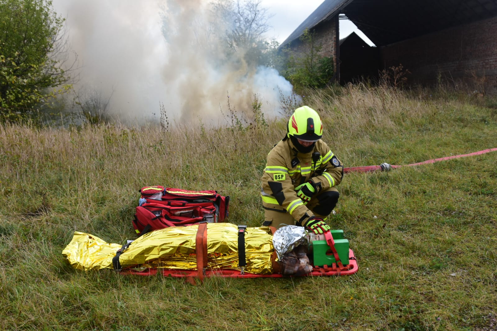 Kierujący Działaniami Ratowniczymi po przeprowadzeniu rozpoznania potwierdza informację o wybuchu oraz kilku osobach poszkodowanych. KDR uzyskuje informację, że doszło do wybuchu zbiornika z substancją niebezpieczną. Prosi o wsparcie dodatkowymi siłami i środkami.