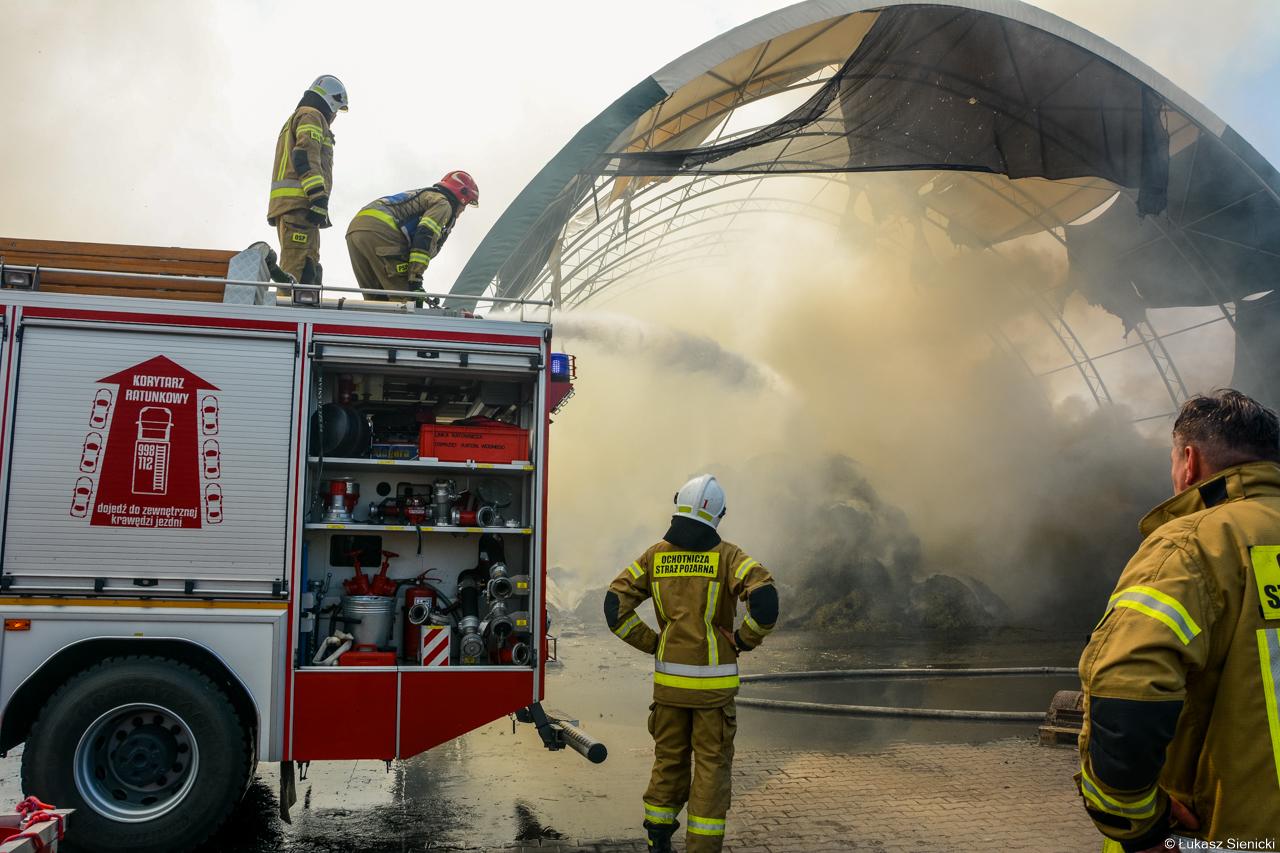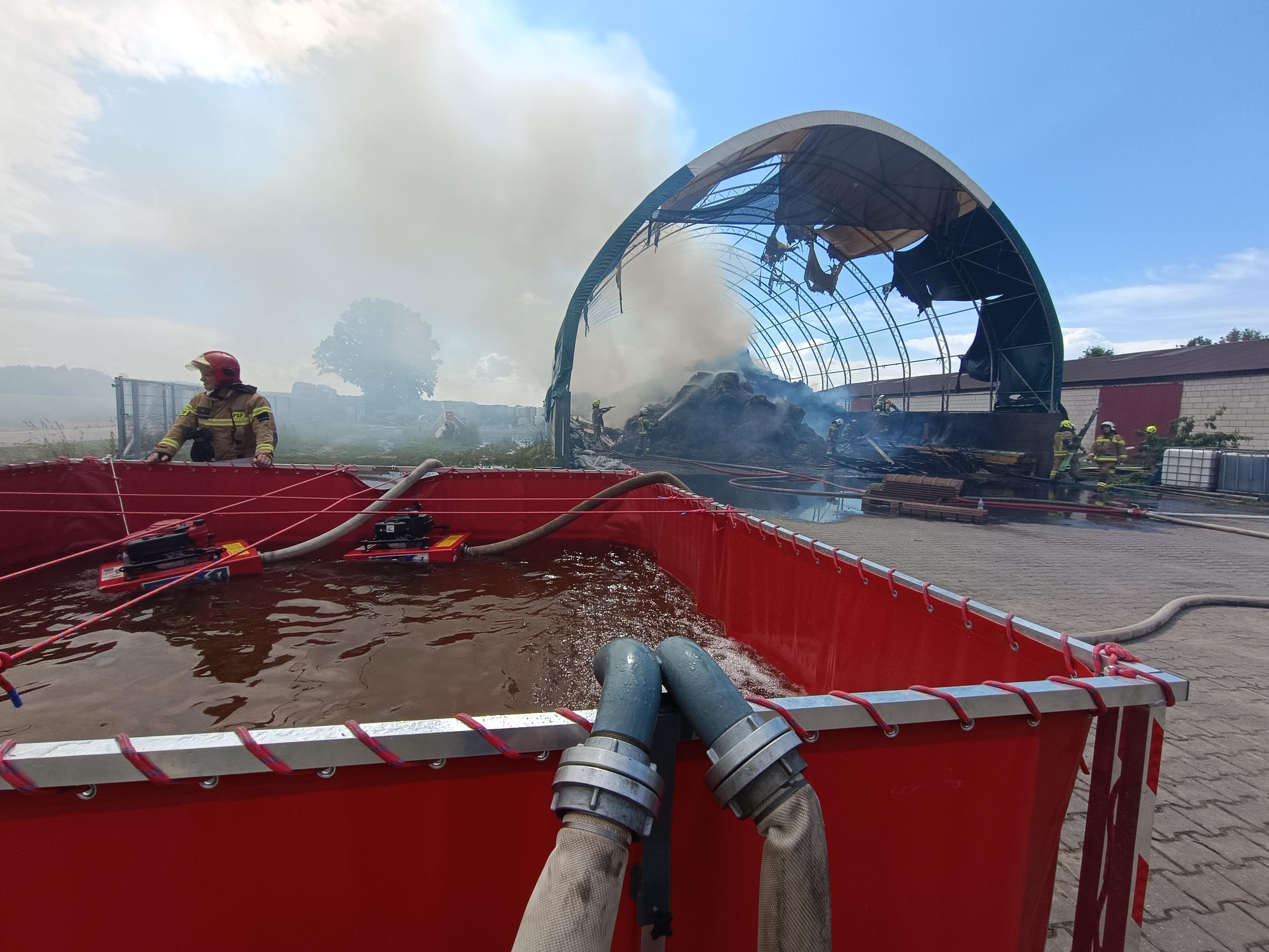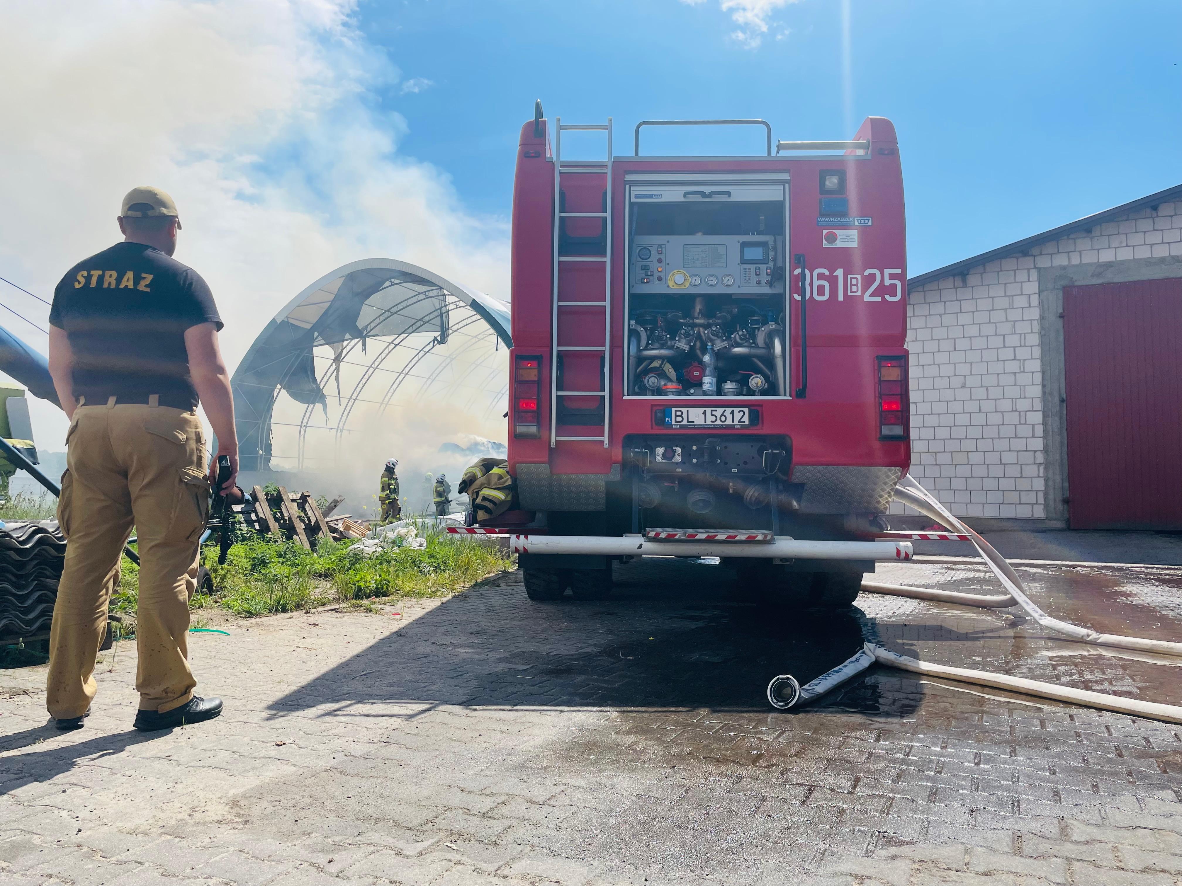 12 zastępów straży pożarnej brało udział w akcji ratowniczo-gaśniczej pożaru hali magazynowej w miejscowości Leopoldowo, gm. Miastkowo.