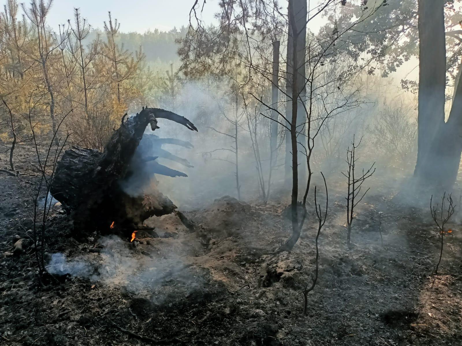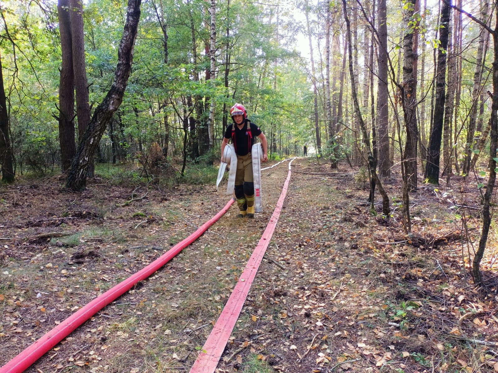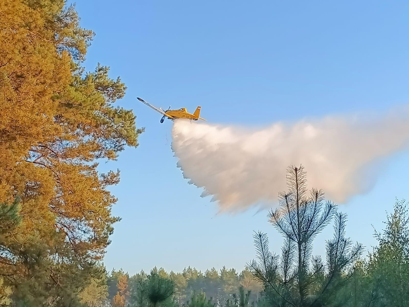 W działania gaśnicze zaangażowany byli strażacy z powiatów łomżyńskiego, zambrowskiego i białostockiego w liczbie 24 zastępów 101 strażaków, w tym również grupa operacyjna i dronowa z KW PSP w Białymstoku. Akcję gaśniczą z powietrza wspomagały 2 samoloty gaśnicze DROMADER z Regionalnej Dyrekcji Lasów Państwowych.