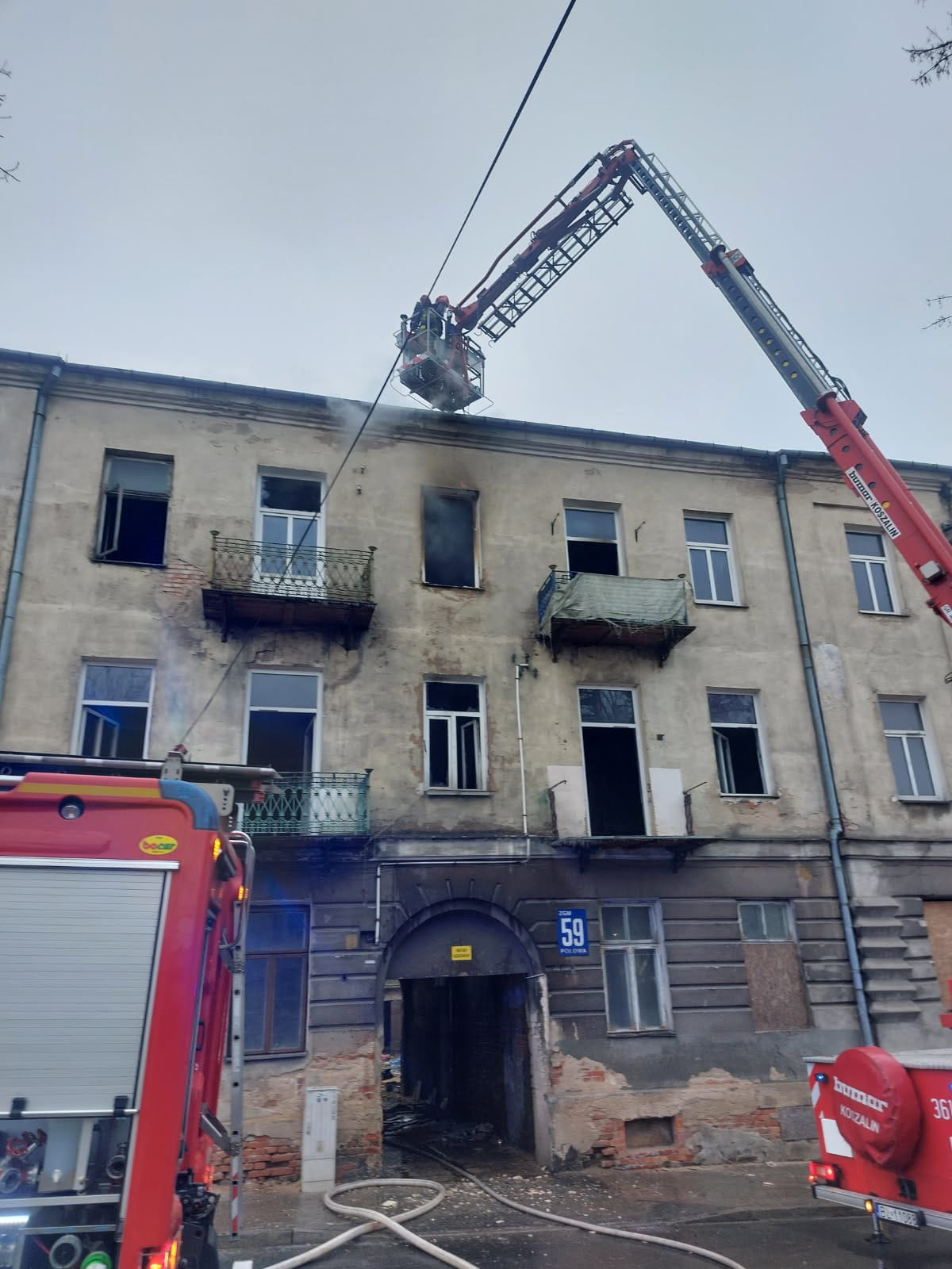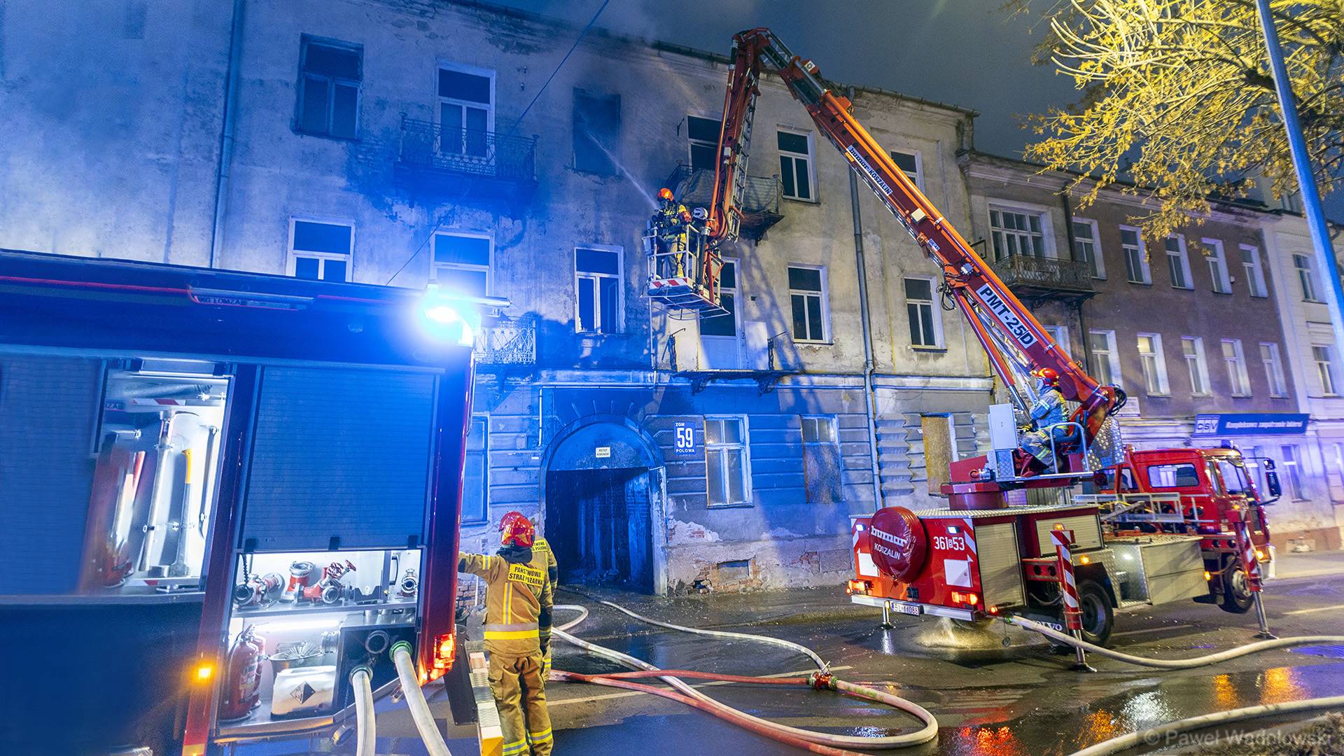 9 lutego 2025 roku o godzinie 5:48 do Stanowiska Kierowania Komendanta Miejskiego Państwowej Straży Pożarnej w Łomży wpłynęło zgłoszenie o pożarze kamienicy przy ul. Polowej w Łomży.