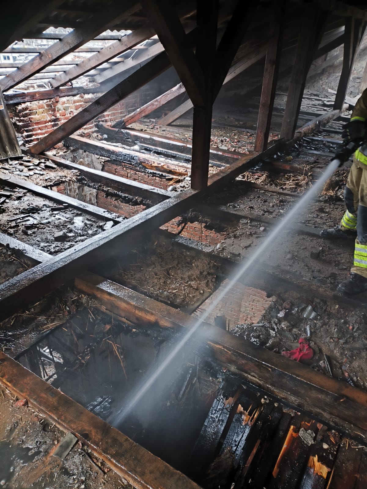 Na miejsce zdarzenia w pierwszej kolejności zadysponowano 3 zastępy JRG Łomża oraz zastęp OSP KSRG Piątnica. Po przybyciu jednostek ochrony przeciwpożarowej stwierdzono ogień na pierwszym i drugim piętrze nieużytkowanej kamienicy.