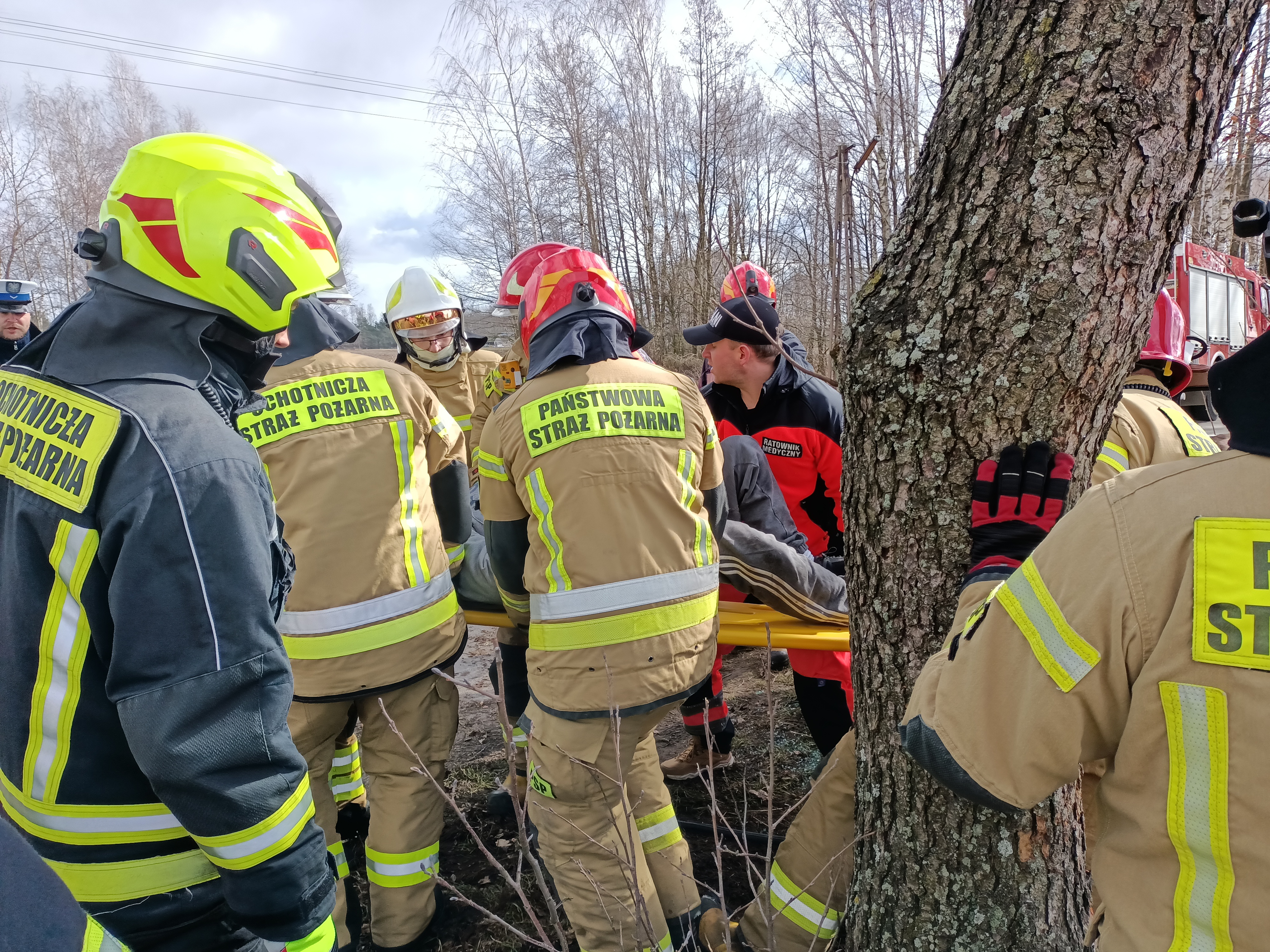 W dniu 15.03.2023 roku o godzinie 10:34 do Stanowiska Kierowania Komendanta Miejskiego PSP w Łomży wpłynęło zgłoszenie o wypadku drogowym w okolicach miejscowości Kuzie, powiat łomżyński.