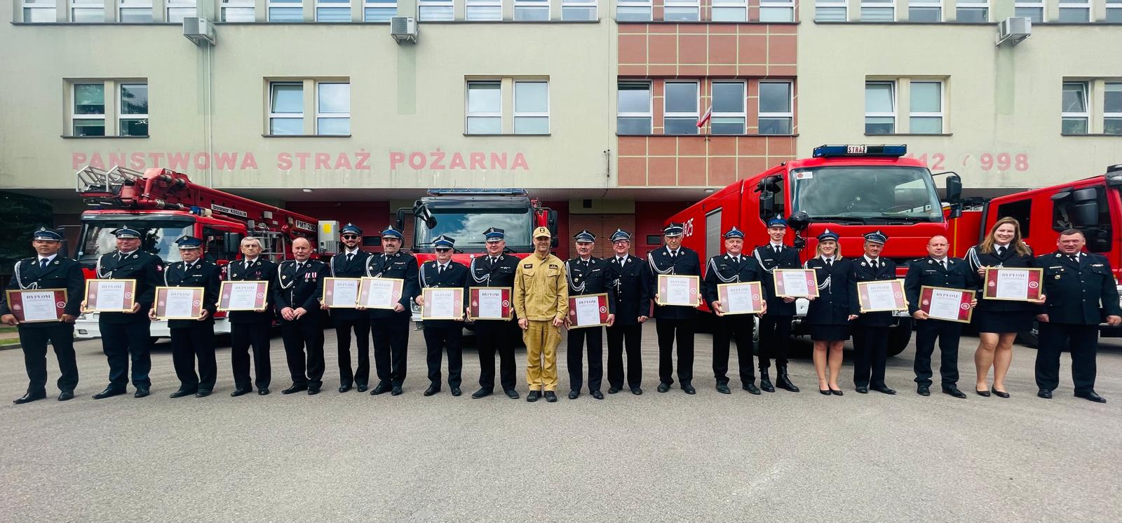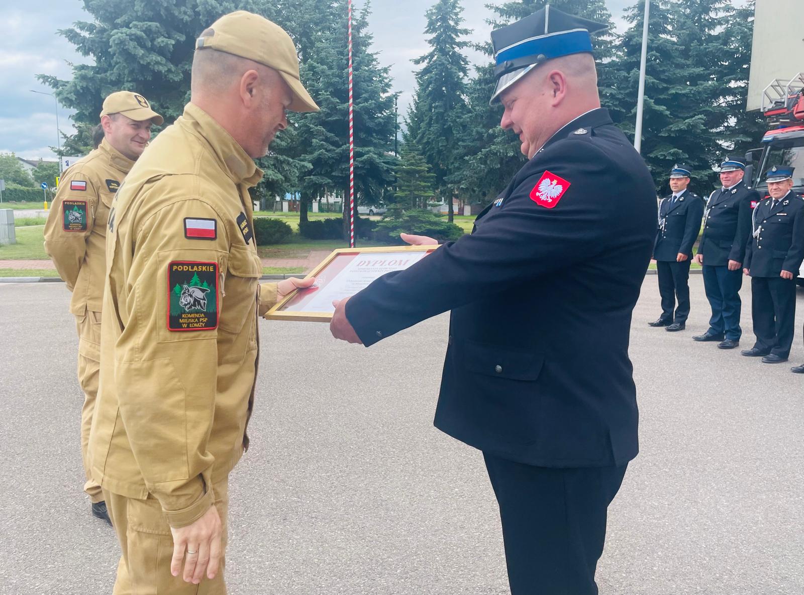 Spotkanie było także okazją do wręczenia okolicznościowych dyplomów z okazji 30-lecia Krajowego Systemu Ratowniczo-Gaśniczego. Z rąk bryg. Arkadiusza Obryckiego komendanta miejskiego PSP w Łomży przedstawiciele 21 jednostek ochrony przeciwpożarowej powiatu łomżyńskiego odebrali dyplomy komendanta głównego Państwowej Straży Pożarnej.