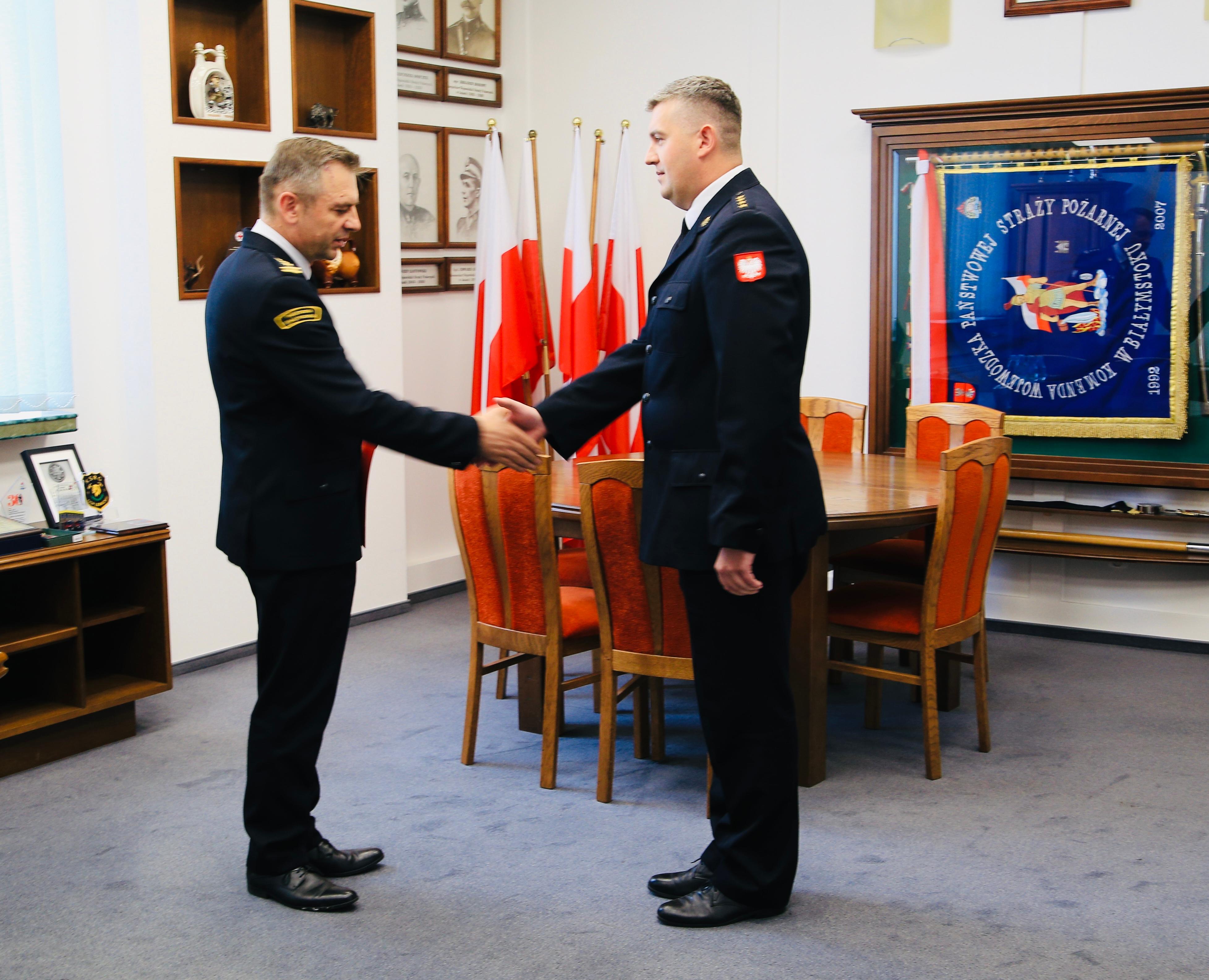 Decyzję wręczono w siedzibie Podlaskiej Komendy Wojewódzkiej PSP w obecności zastępców podlaskiego komendanta wojewódzkiego PSP st. bryg. Grzegorza Lisowskiego i st. bryg. Marcina Wierela oraz w obecności bryg. Arkadiusza Obryckiego komendanta miejskiego PSP w Łomży.