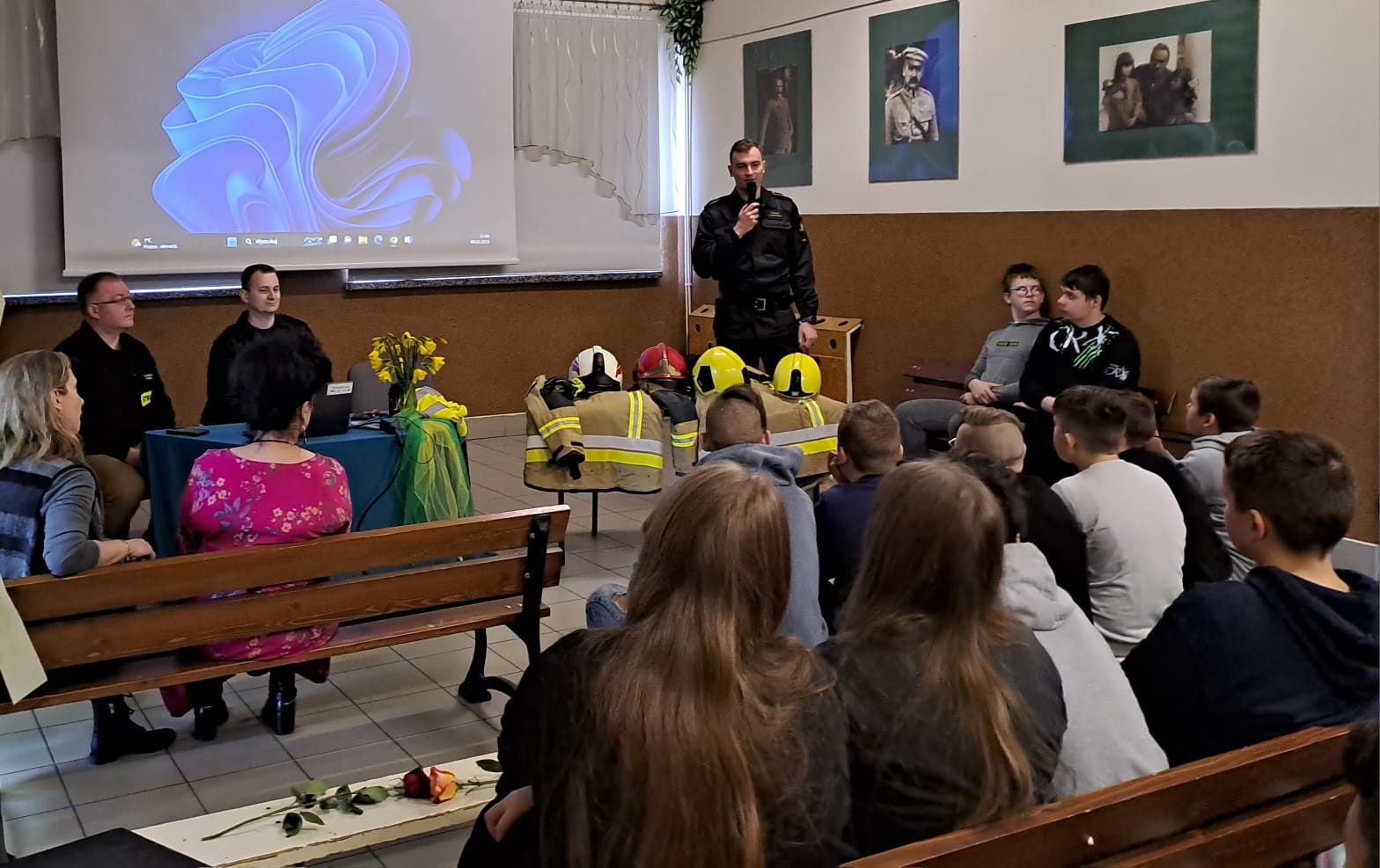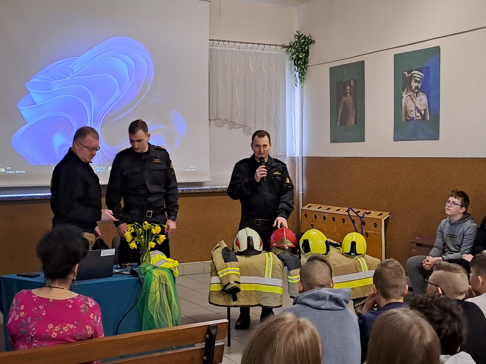 W dniu 8 marca 2023 r. funkcjonariusze Wydziału Operacyjnego KM PSP w Łomży wraz z ks. Jarosławem Świderkiem, kapelanem powiatowym strażaków oraz czynnym członkiem OSP Miastkowo odwiedzili uczniów Szkoły Podstawowej w Miastkowie.